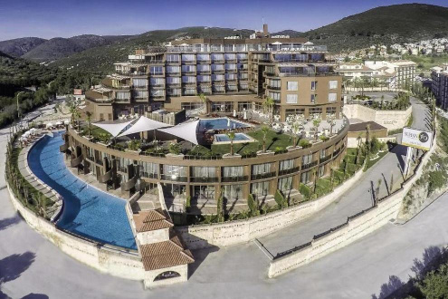 Разположен е 2.5 км от брега на Егейско море, на 3 км от центъра на Кушадасъ и на 15 км от живописния древен град Ефес, на около 25 минути път с кола от търговски център, и само на 5 км споделени хотел и изискани ресторанти и барове. Летище "Милас" отстои на 130 км. Построен е през 2015 г., с обща площ от 10 120 кв.м.