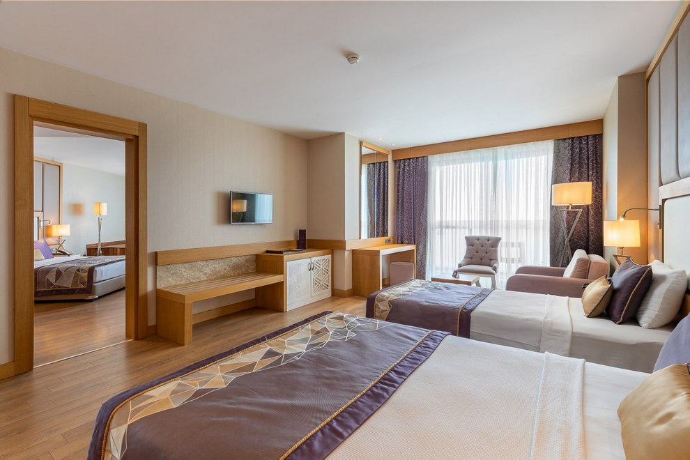 Хотелът посреща гостите си в климатизирани стаи, които са обзаведени с телефон, телевизор, минибар, електронен сейф, самостоятелна баня с душ/вана, сешоар, балкон. Стаите се почистват ежедневно.