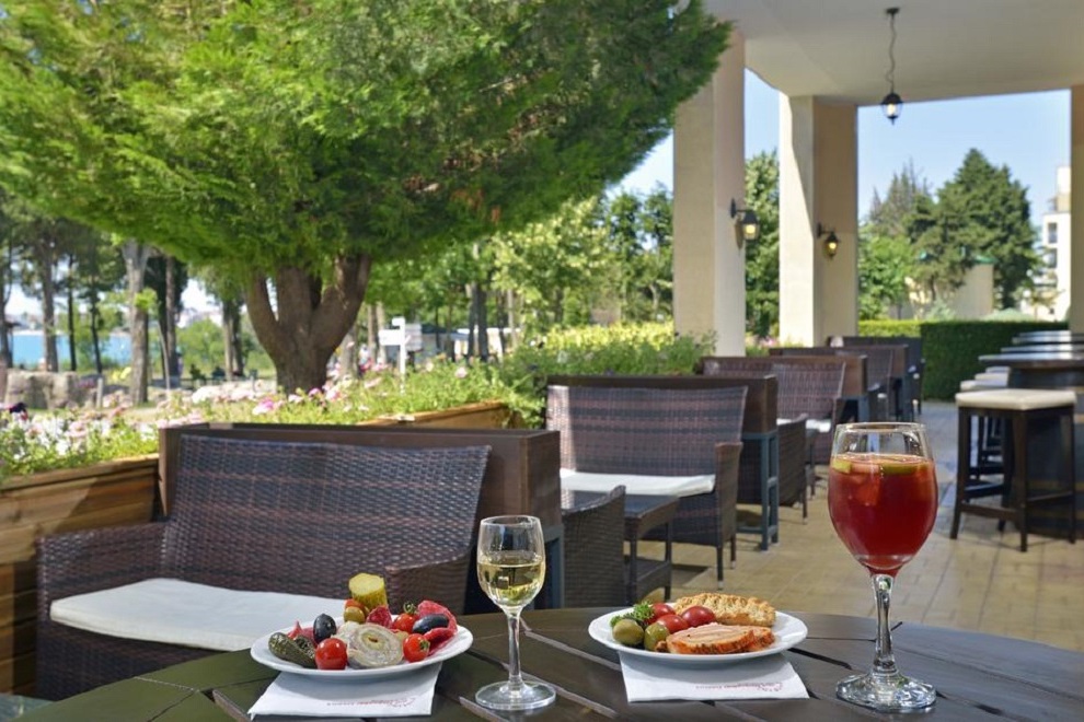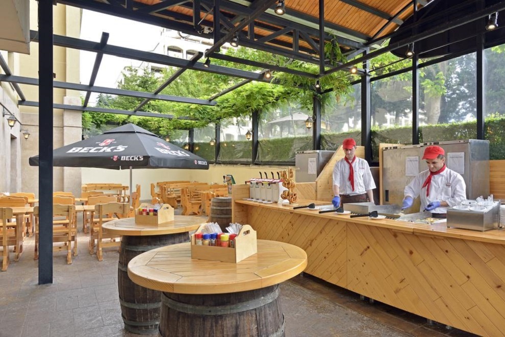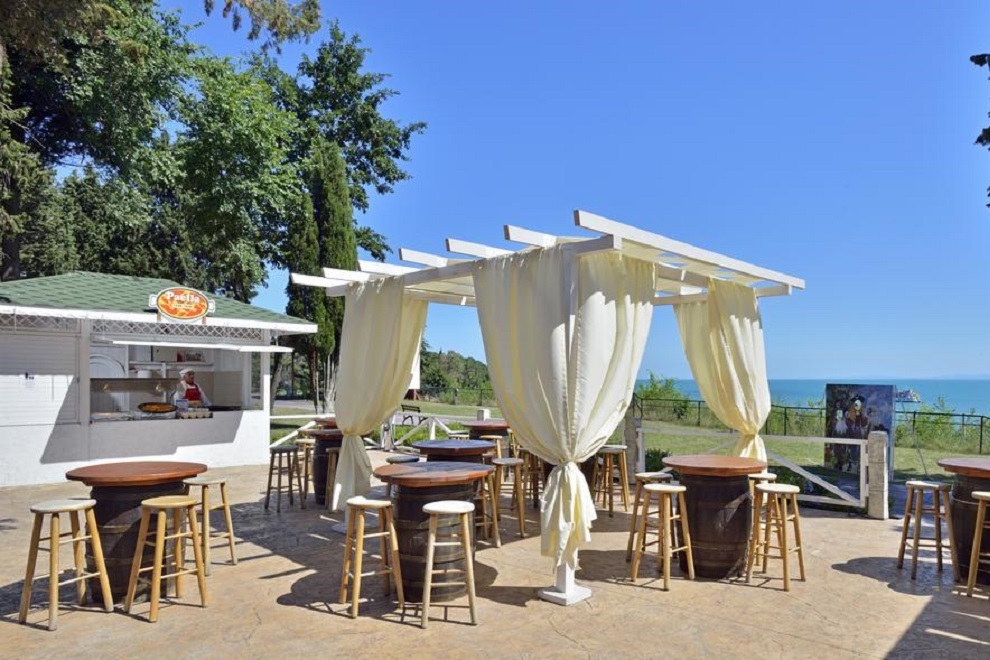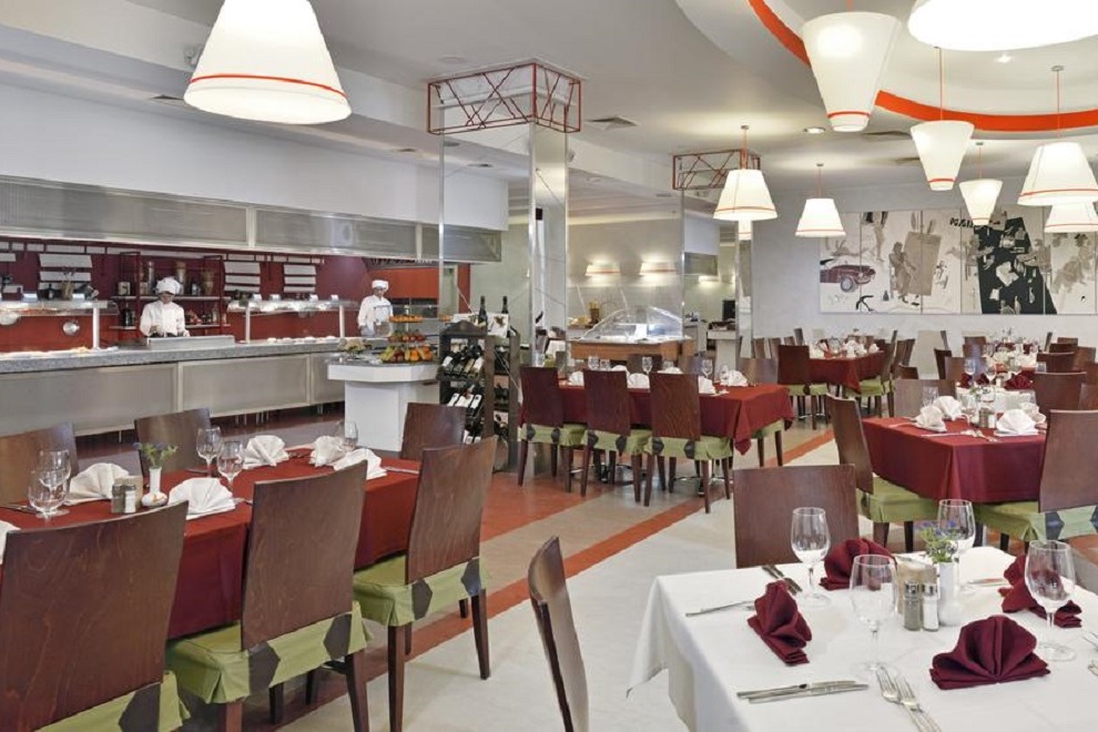 Хотелът има 6 тематични ресторанта/бара, поднасящи изискана кухня и напитки. Гостите могат да избират измежду интернационални и български ястия в основния ресторант, испанска кухня в Paellador Levante (работи от юни до средата на септември), италиански ресторант Osteria del Golfo (от средата на май до края на септември), суши рулца и морска храна в Umi Japanese Corners (от юни до края на август), испански тапас и коктейли в Taperia Malecon (от юни до края на септември) и Biergarten (от средата на май до края на септември). Бар Embarcadero (работи от юни до средата на септември) е с уникално местоположение на крайбрежните тераси и предлага сандвичи панини, освежаващи коктейли и безалкохолни напитки.