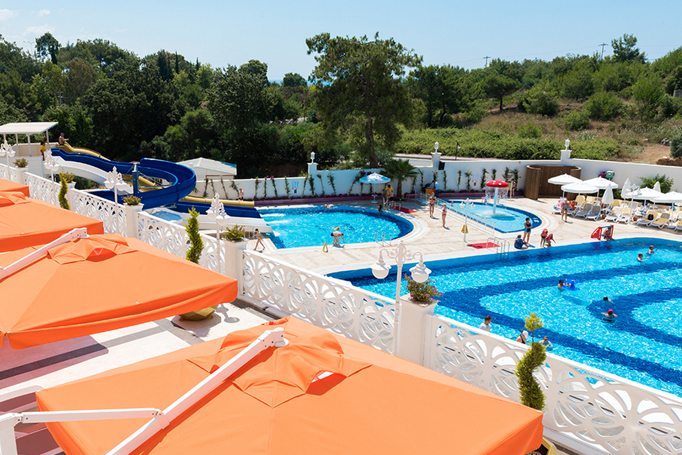 Хотелът има собствен пясъчно-чакълест плаж на 500 метра, осигурен е безплатен шатъл. За удобството на своите гости предлага открит басейн. Чадъри, шезлонги, матраци и плажни кърпи на плажа и при басейна се предоставят безплатно.