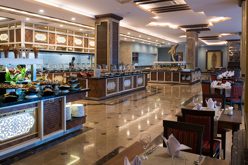 Хотелът има основен ресторант и 2 а`ла карт ресторанта, в които се поднася турска и италианска кухня. В 4-те бара на хотела се поднасят разнообразни напитки.