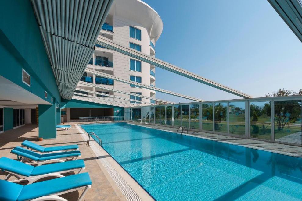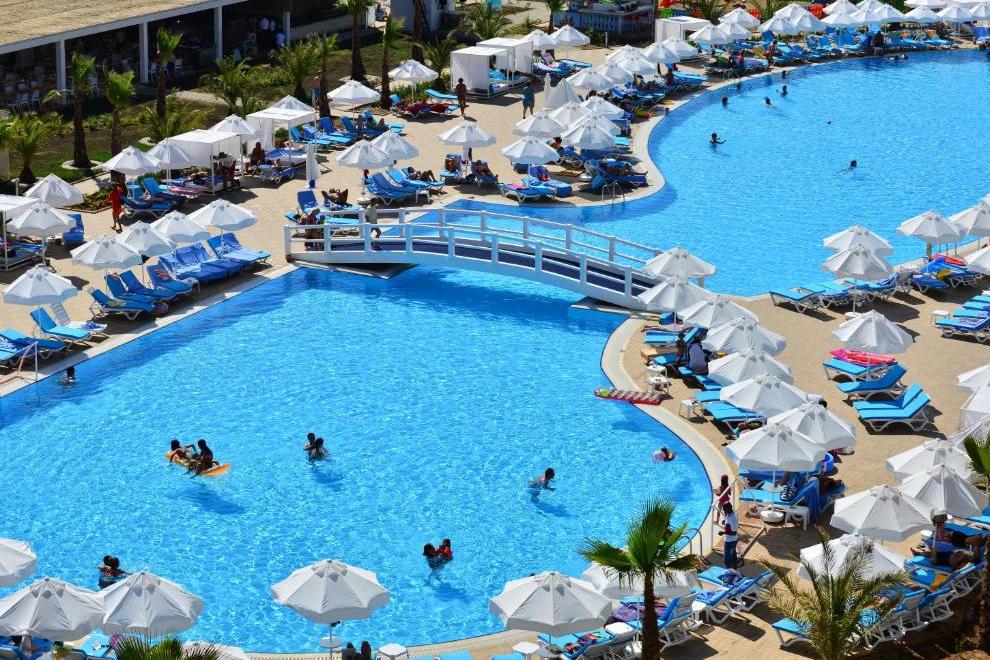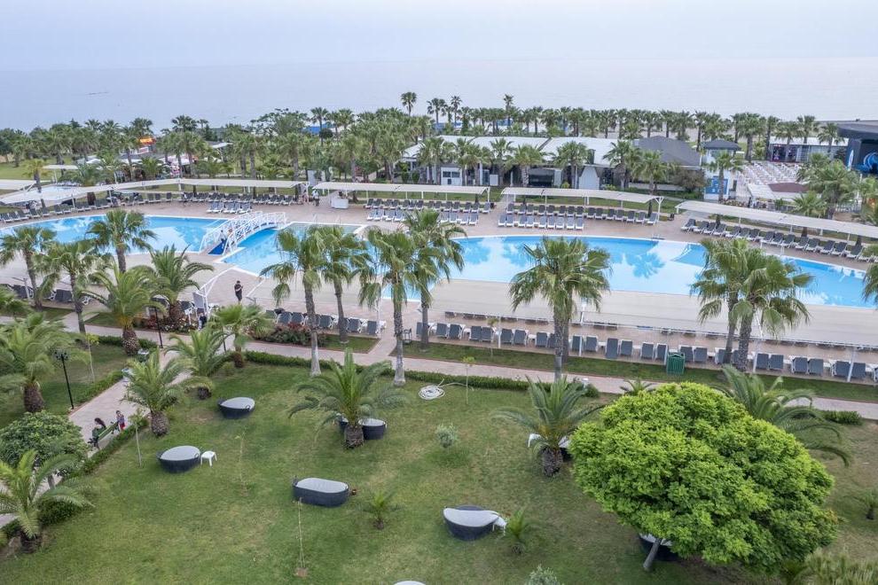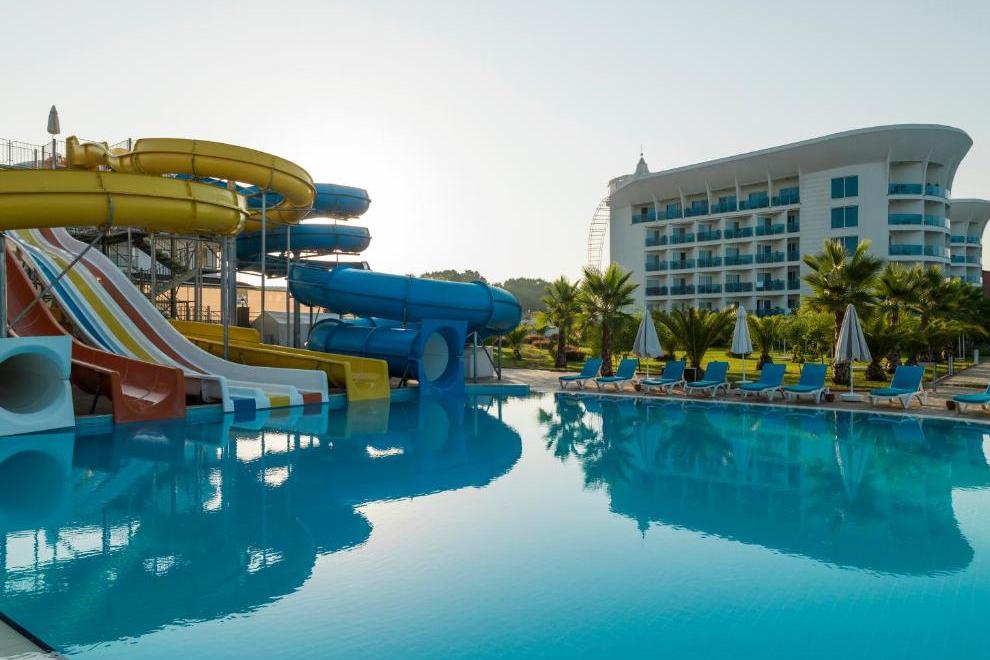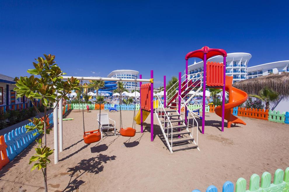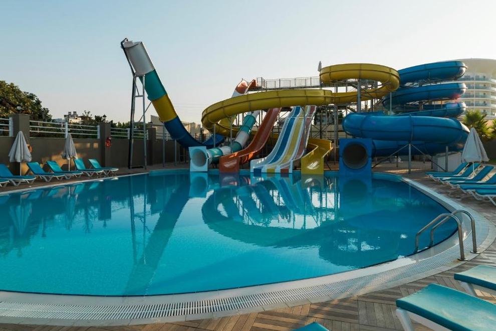 Хотелът има собствен пясъчен плаж. На разположение на гостите има 2 външни басейна (един с 8 пързалки и един релакс басейн), 1 външен детски басейн и 1 вътрешен.