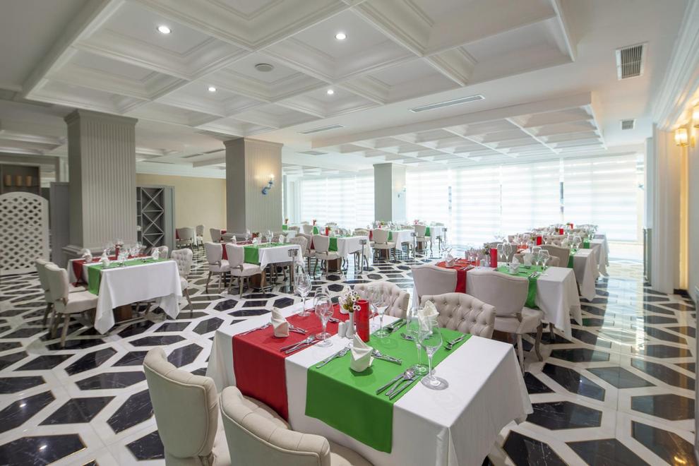 На разположение на гостите има основен ресторант, 3 а`ла карт ресторанта - рибен, италиански и турски, 3 бара (лоби бар, снек бар и бар на плажа),