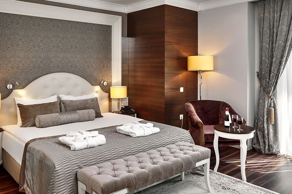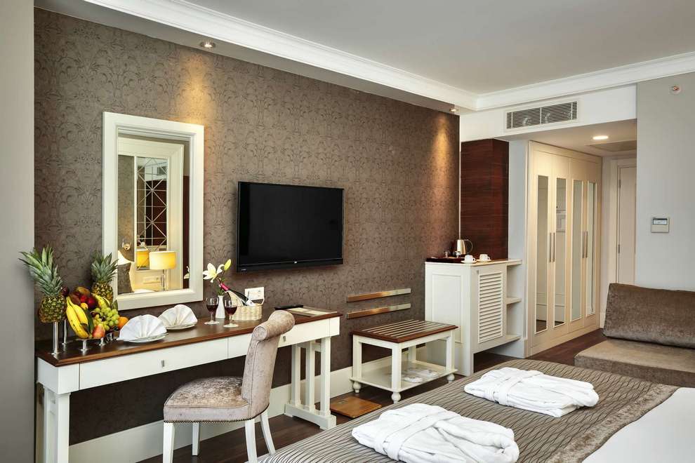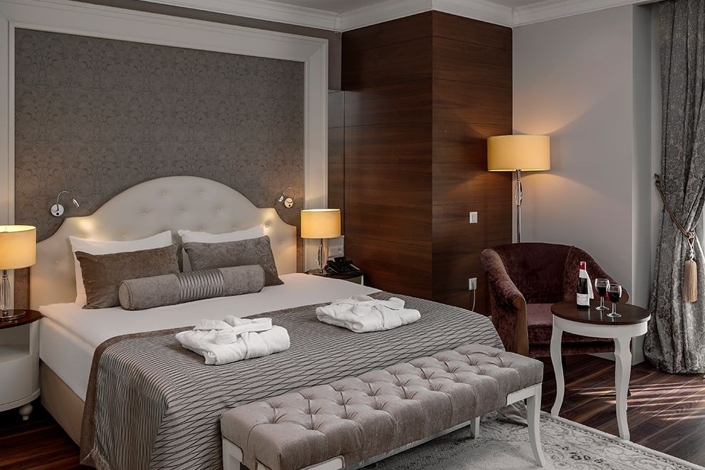 Хотелът се състои от една 7-етажна сграда (8 асансьора), в която са разпределени 470 климатизирани стаи: 406 Standard room (с изглед градина, частичен изглед море и изглед море - 29 кв.м), 50 Family suite (40 с изглед море, 2 спални, 1 баня - 36 кв.м): 10 с изглед градина, 2 спални, 1 баня - 42 кв.м), 9 Royal deluxe suite (с изглед море, 1 спалня, 1 всекидневна, 2 бани - 69 кв.м), 4 Laguna suite (с изглед море, 2 спални, 1 всекидневна, 2 бани - 86 кв.м), 1 Presidental suite (с изглед море, 2 спални, 1 всекидневна, 2 бани, сауна, джакузи - 165 кв.м) и 5 Handicapped (пригодени за хора с ограничена подвижност - 29 кв.м). Всички стаи са оборудвани с телевизор, телефон, сет за чай/кафе, минибар (ежедневно зареждане с безалкохолни напитки, бира, вода и специално мляко Nesquik за семейства с деца - безплатно), сейф (безплатен), баня с душ, сешоар, безплатни тоалетни принадлежности, балкон, Wi-Fi. Икономичните стаи са на приземен етаж без балкон. Почистване на стаите и смяна на кърпите - всеки ден, смяна на спалното бельо - 3 пъти в седмицата. , от които 420 стандартни, 50 фамилни, 13 суита, 1 президентски суит и 5 стаи за хора с увреждания. Всички стаи са оборудвани с телевизор, телефон, баня с душ, сешоар, сет за чай/кафе, минибар (безплатен), сейф (безплатен), балкон, има и Wi-Fi интернет. Икономичните стаи са на приземен етаж и са без балкон. Почистване на стаите и смяна на кърпите - всеки ден, смяна на спалното бельо - 3 пъти в седмицата.