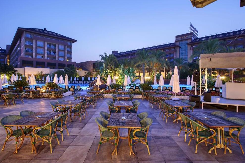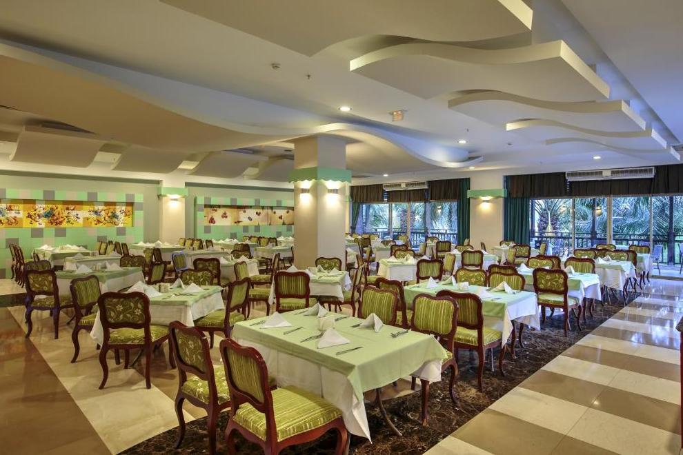 На разположение на гостите са основен ресторант (закуски на бара на плажа и нощен бюфет) и 6 а`ла карт ресторанта: италиански, мексикански, азиатски, рибен, турски и грил ресторант. Освежаващи напитки и закуски се поднасят в лоби бар, бар при басейна, бар на плажа, диско бар, Cafe Paris и Kybela Pub.