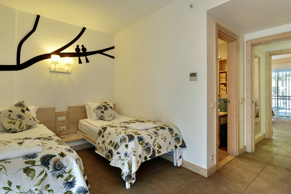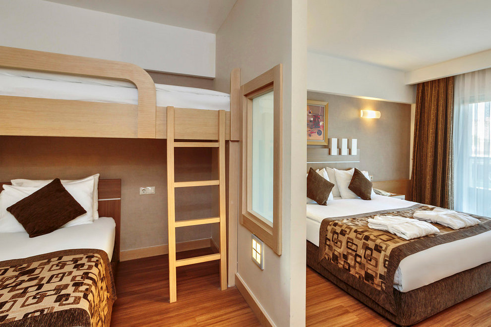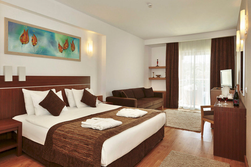 Хотелът се състои от две основни 5-етажни сгради и 15 Lake Houses (на три етажа). Посреща гостите си в 673 климатизирани стаи: Lake house standart (20 кв.м), Standart (27 кв.м), Family room bunkbed (27 кв.м), Family room (30-40 кв.м). Те са оборудвани с телефон, телевизор, минибар, сейф, самостоятелна баня, сешоар, безплатен Wi-Fi, балкон. Ежедневно почистване на стаите, спалното бельо се сменя веднъж на три дни.