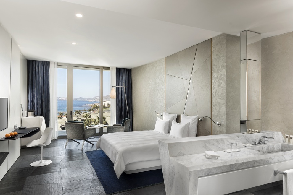 Всички 66 стаи в Swissotel Resort Bodrum Beach са с красив изглед към морето и островите. Те са оборудвани с климатик, телефон, сейф, кът за сядане, електрическа кана, минибар и плоскоекранен телевизор. Самостоятелните бани са оборудвани с душ и сешоар. Тоалетните принадлежности Purovel включват душ гел, шампоан и крем.