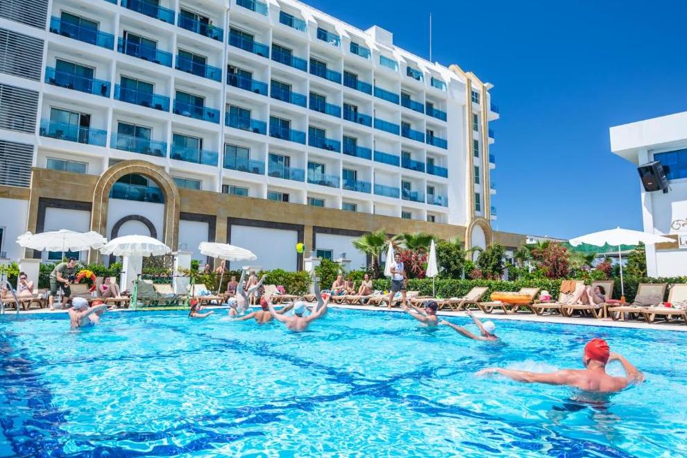 Хотелът има собствен пясъчно-чакълест плаж. Има и 2 открити басейна с 5 пързалки, както и тераса за слънчеви бани. На плажа и при басейна чадъри, шезлонги, матраци се предоставят безплатно.
