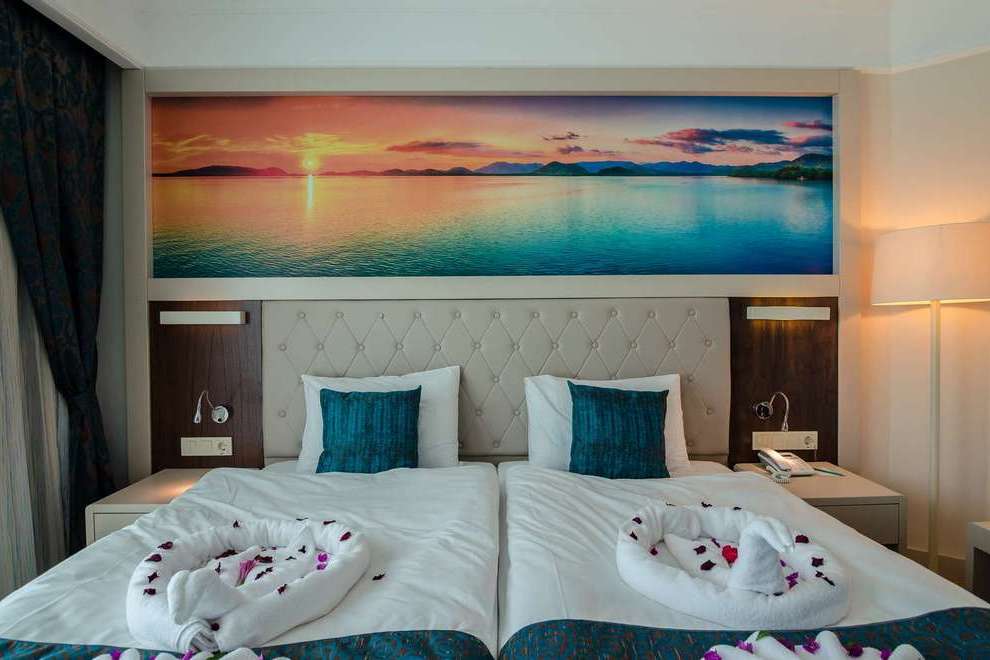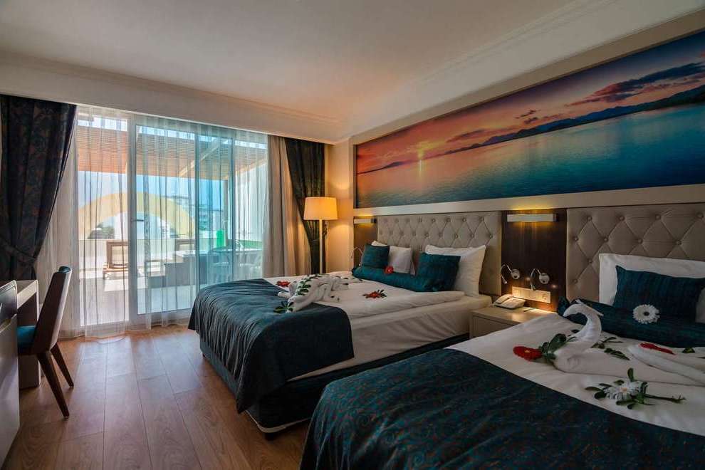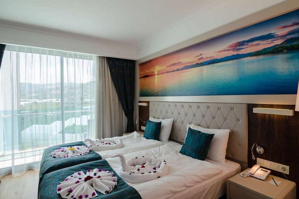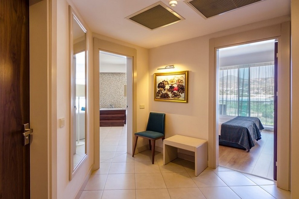 Хотелът се състои от една 6-етажна сграда (4 асансьора), в които са разпределени 331 Standard room (от тях 3 стаи за хора с ограничена подвижност, макс. 3+1чов., 24-28 м2); 12 двустайни Family room (2 спални с врата, 2 бани с вана, макс. 4+бебе, 60 м2); 15 едностайни Deluxe room (една спалня, джакузи на терасата, макс. 3 човека, 28 м2). Климатизираните стаи разполагат с телевизор, телефон, минибар, сейф, балкон. Баня с душ, безплатни тоалетни принадлежности и сешоар.