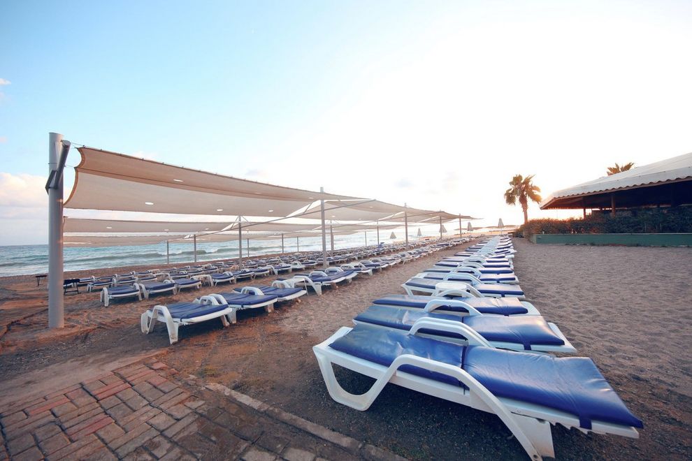 Хотелът има собствен пясъчно-чакълест плаж на 200 м сградата, до който се стига през декоративен подземен проход. За гостите има и два открити басейна с три водни пързалки. Чадъри, плажни хавлии, шезлонги и матраци на плажа и при басейна се ползват безплатно.