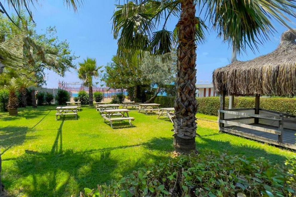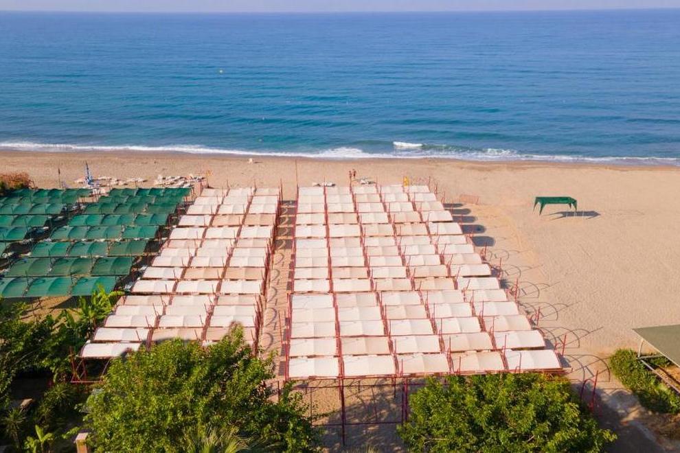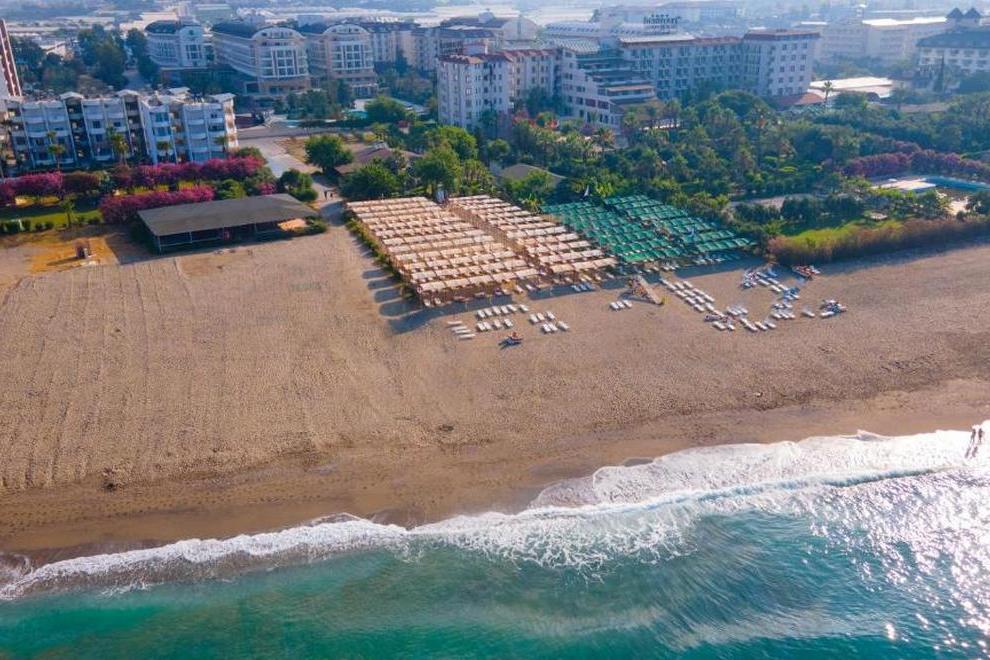 Собственият пясъчно-чакълест плаж на хотела се намира на 250 метра. Между плажа и хотела има автомобилен път, няма подземен проход. На разположение на гостите има два открити басейна с прясна вода и един закрит басейн.