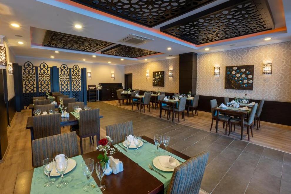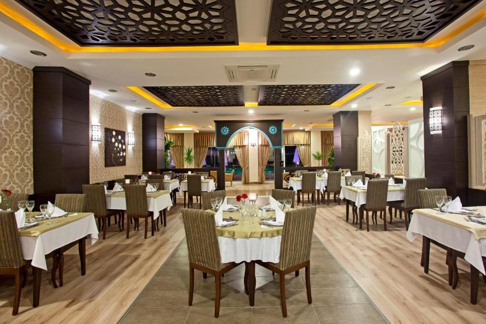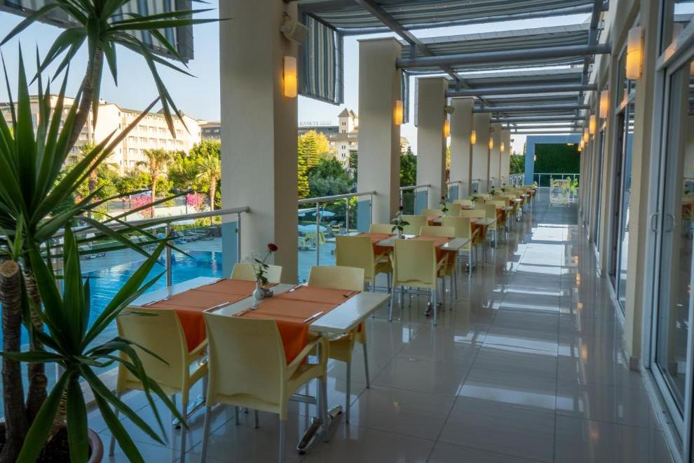 На разположение на гостите са основен ресторант (с диетично и вегетарианско меню) и два а`ла карт ресторанта: Tethys restaurant - рибен, и Themis restaurant - турска кухня. Освежаващи напитки и закуски се поднасят в бар на плажа, бар при басейна и лоби бар.