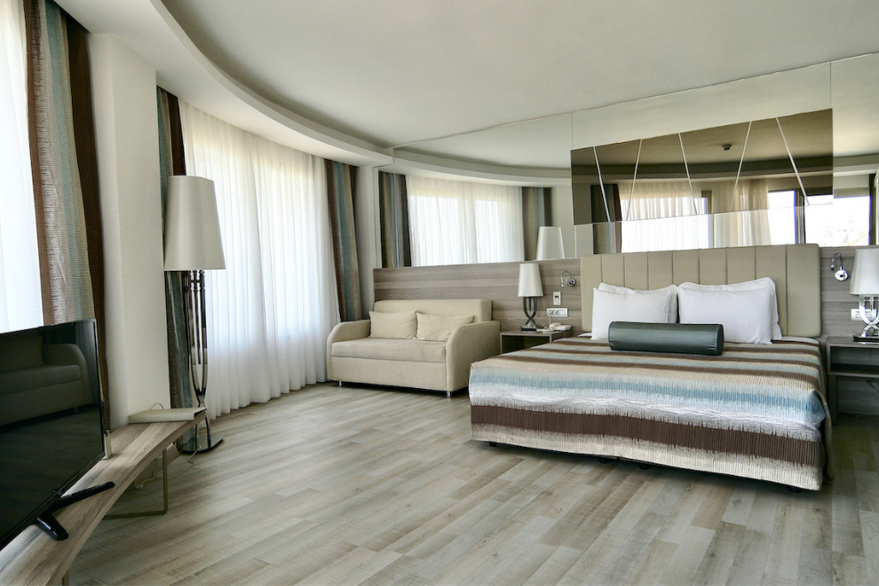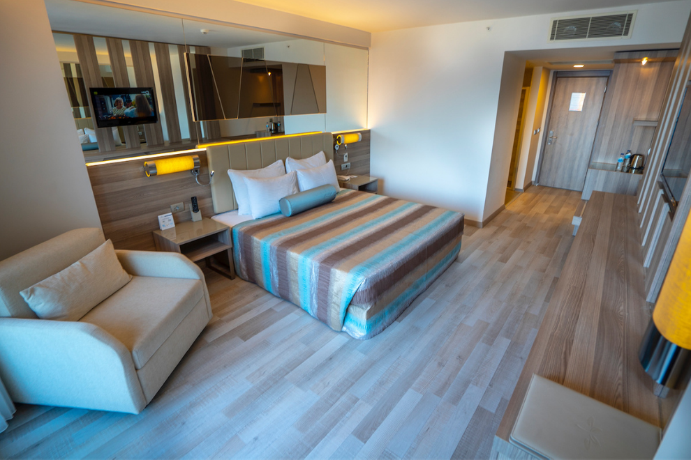 Хотелът се състои от едно здание на 5 етажа (3 асансьора), в което са разпределени 213 стаи. Те са оборудвани с централен климатик, телефон, телевизор, минибар, термокана, сейф, самостоятелна баня, балкон, безплатен Wi-Fi. Стаите се почистват ежедневно, спалното бельо се сменя веднъж на три дни.