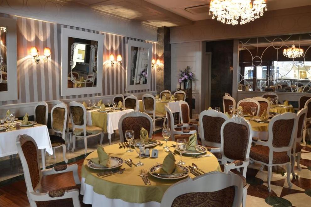 Ресторант „Melissa” е отворен между 07:00 – 10:00 ч. за закуска, 10:00 – 10:30 ч. за късна закуска, 12:30 – 14:30 ч. за обяд и 18:30 – 21:00 ч. за вечеря и предлага богата гама от алкохолни и безалкохолни напитки. Снек ресторантите са разположени на брега и край басейна и работят от 12:00 – 15:00 часа. Има кът за гюзлеме между 11:00 – 16:00 ч., кът за сладолед между 13:30 – 16:30 ч., сладкарница между 11:00 – 17:00 ч. и рум сървиз за 24 часа. Вечеря между 21:30 – 02:00 ч. и ранната закуска между 02:00 – 07:00 ч. е в “Ristorante La Mimosa”. Хотелът има още AQUA POOL BAR, BEACH BAR, LOBBY BAR, SUNSET BAR, N-JOY BAR, DISCO BAR.