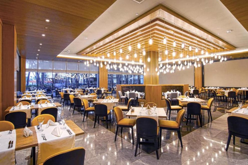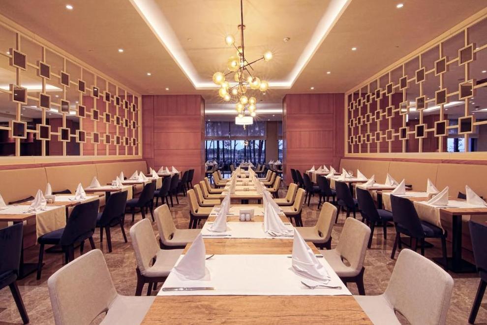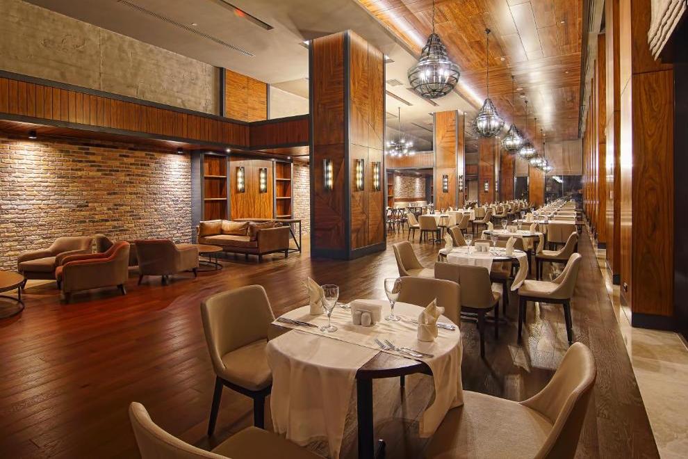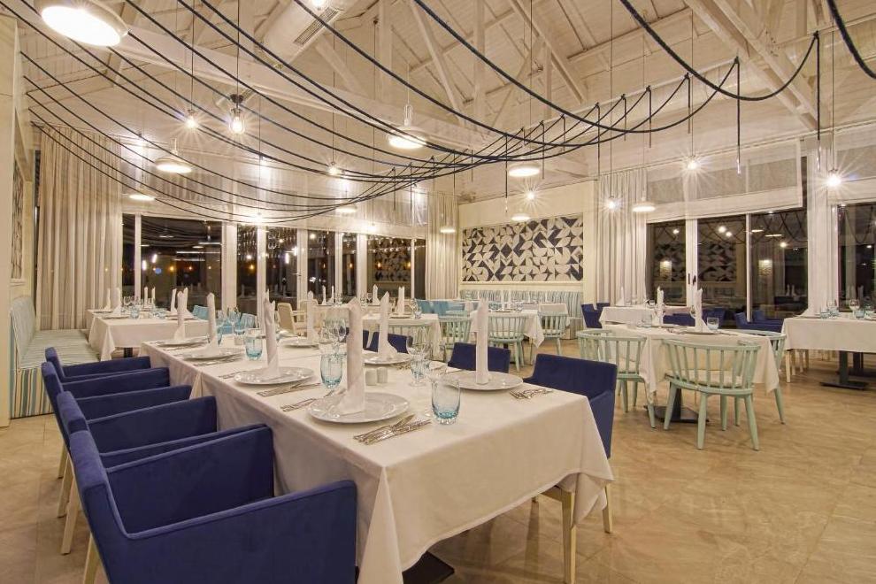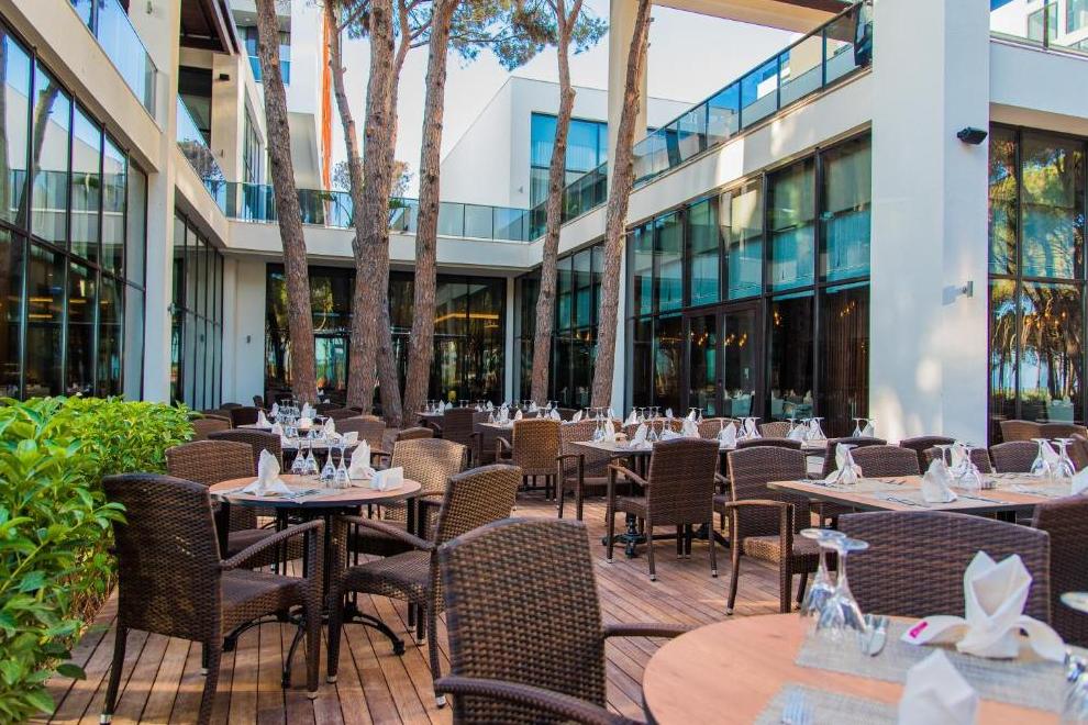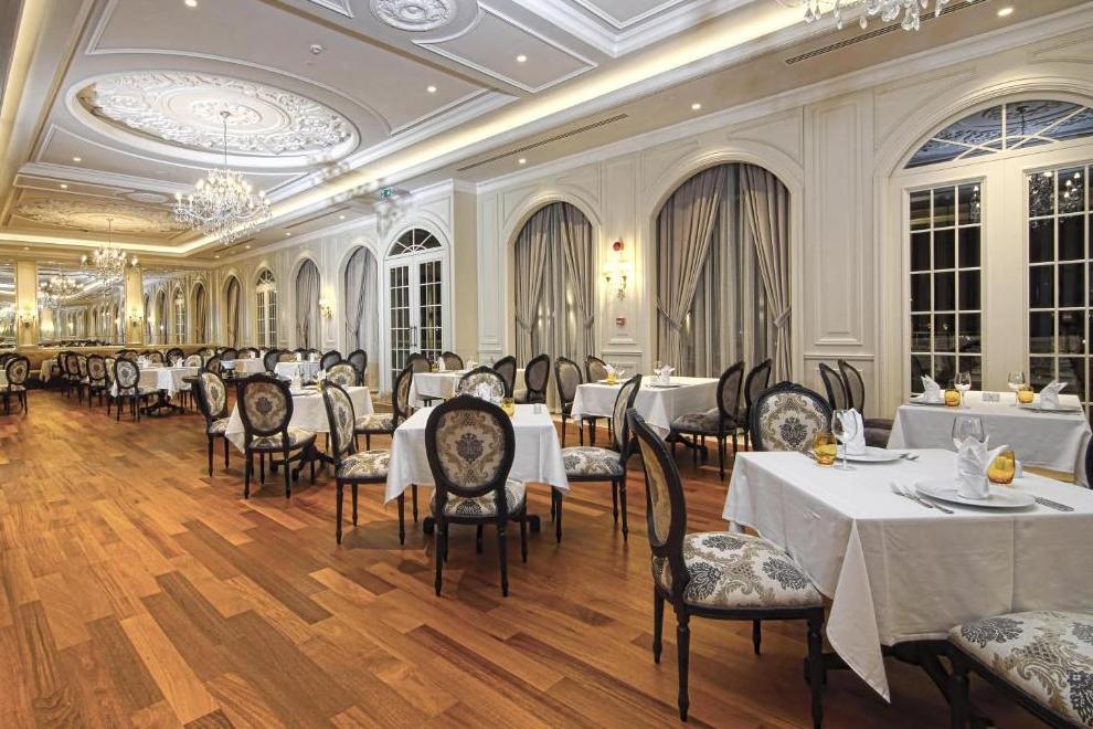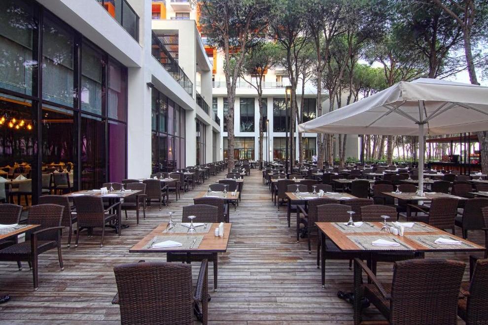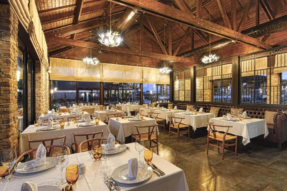 На разположение на гостите са основен ресторант и 6 а`ла карт ресторанта: Италиански ресторант, гръцки ресторант, ресторант в интеационална кухня, японски ресторант, ресторант с далекоизточна кухня, Steak House (работно време на а`ла карт ресторантите 19:00-22:00 ч., необходима е предварителна резервация). Освежаващи напитки и закуски се поднасят в 9 бара: Trendy лоби бар (денонощно), N-Joy спортен бар (17:00-00:00 ч.), Beach бар (10:00-18:00 ч.), Pool Бар (10:00-00:00 ч.), Vitamin бар (10:00-18:00 ч.), Villa бар (10:00-18:00 ч.), Eclair (Pastane) Bar (16:00-00:00 ч.), Snack бар (10:00-23:00 ч.) и Нощен клуб (23:00-02:00 ч.).