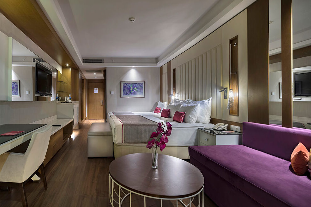 Хотелът се състои от три 7-етажни основни сгради, 2-етажни корпуса Garden и 2-етажни вили. Всички стаи 674 разполагат с плоскоекранен телевизор. Някои помещения за настаняване имат кът за сядане. Някои стаи са с изглед към морето или градината. Предлагат се халати, чехли и сешоар. Trendy Lara предлага безплатен Wi-Fi на цялата площ.