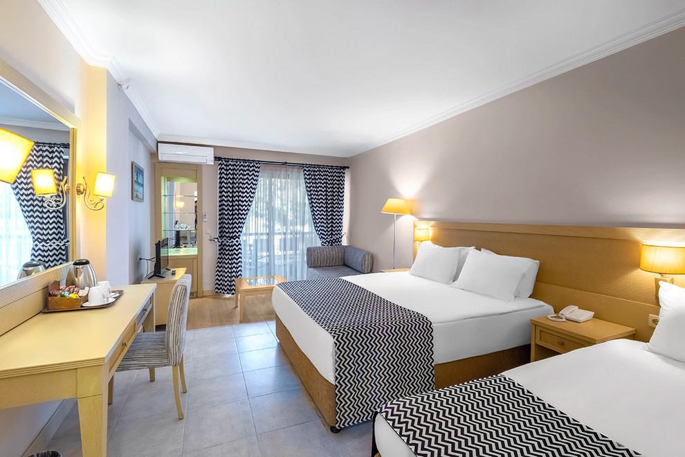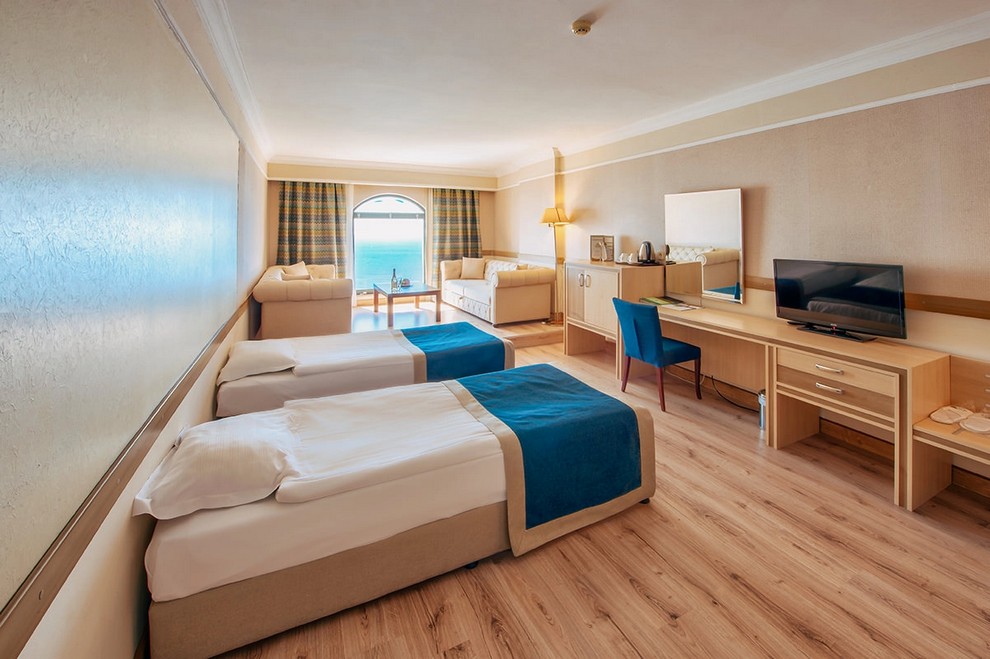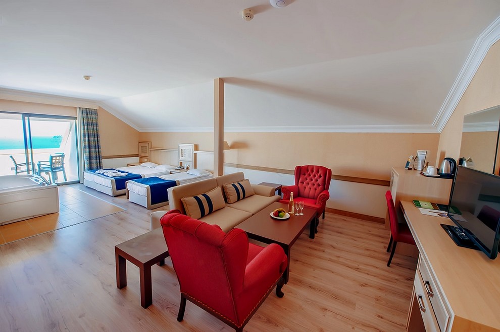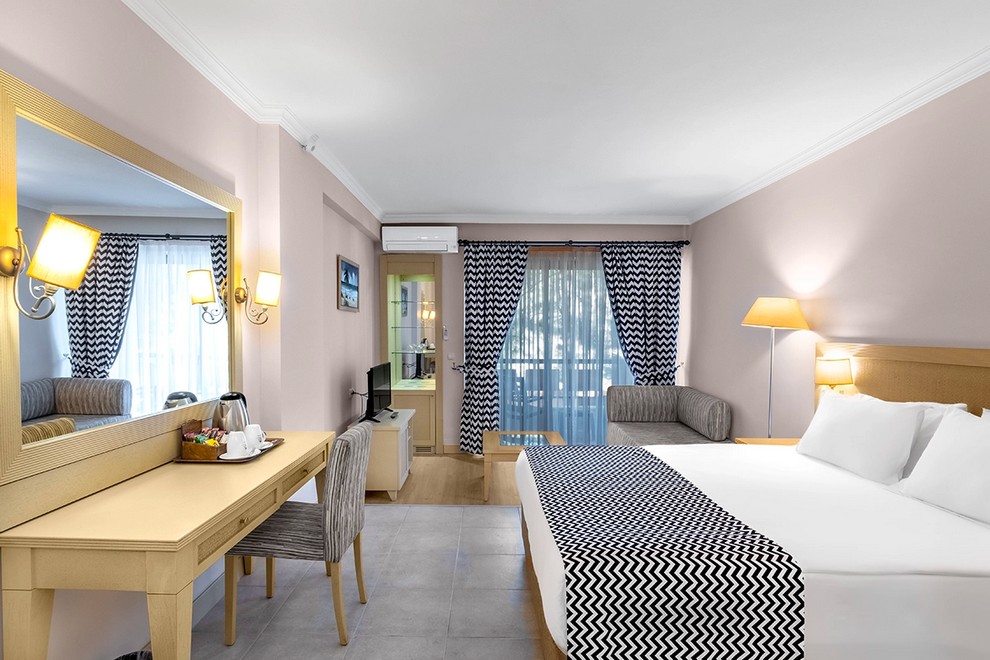 Хотелът посреща гостите си в 567 климатизирани стаи като Standard Room, Villa Standard Room Sea View, Main Building Standard Room, Terrace Suite, Junior Suite, Corner Suiteи др. Всички стаи са оборудвани климатик, телевизор, телефон, минибар (зареждане с разхладителни напитки – всеки ден), сет за приготвяне на чай/кафе, сейф, самостоятелна баня с душ и вана, сешоар, тоалетни принадлежности, балкон.