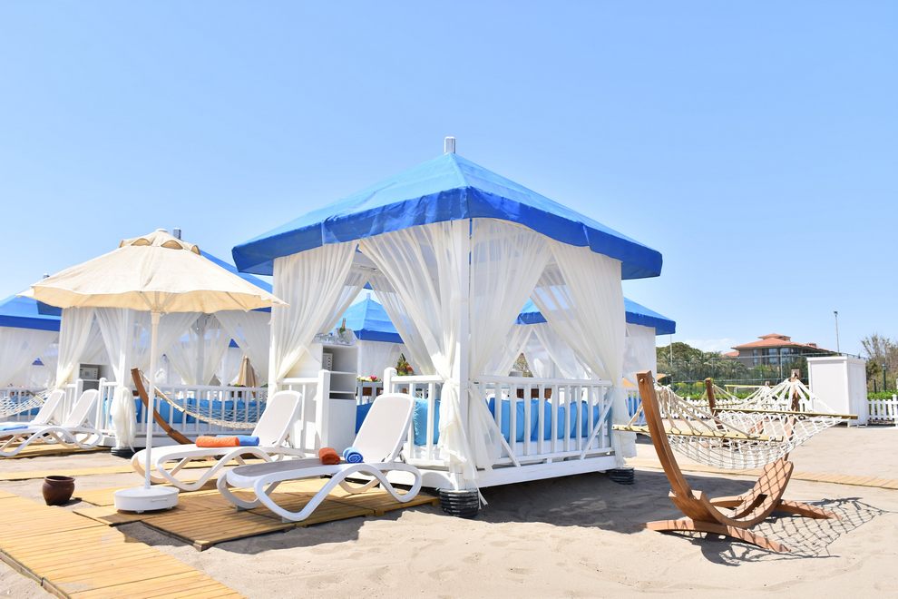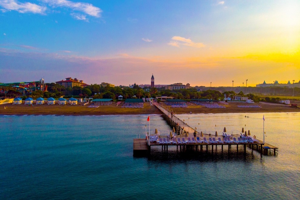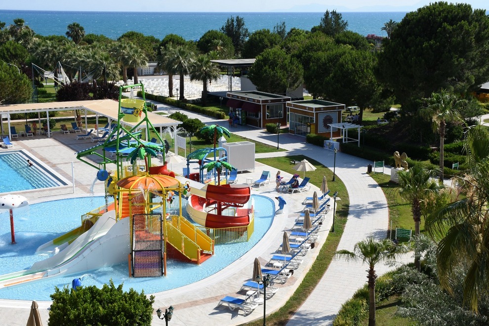 Хотелът има собствен пясъчен плаж с понтон, павилиони на плажа (срещу заплащане). На разположение на гостите има външен басейн без отопление, с прясна вода, площ 3500 кв.м. Закрит сладководен басейн с площ 165 кв.м (отопляем само през зимата), 11 водни пързалки (7 за възрастни, 4 за деца). Аквапаркът е отворен от 01.04 до 31.10, в зависимост от метеорологичните условия.