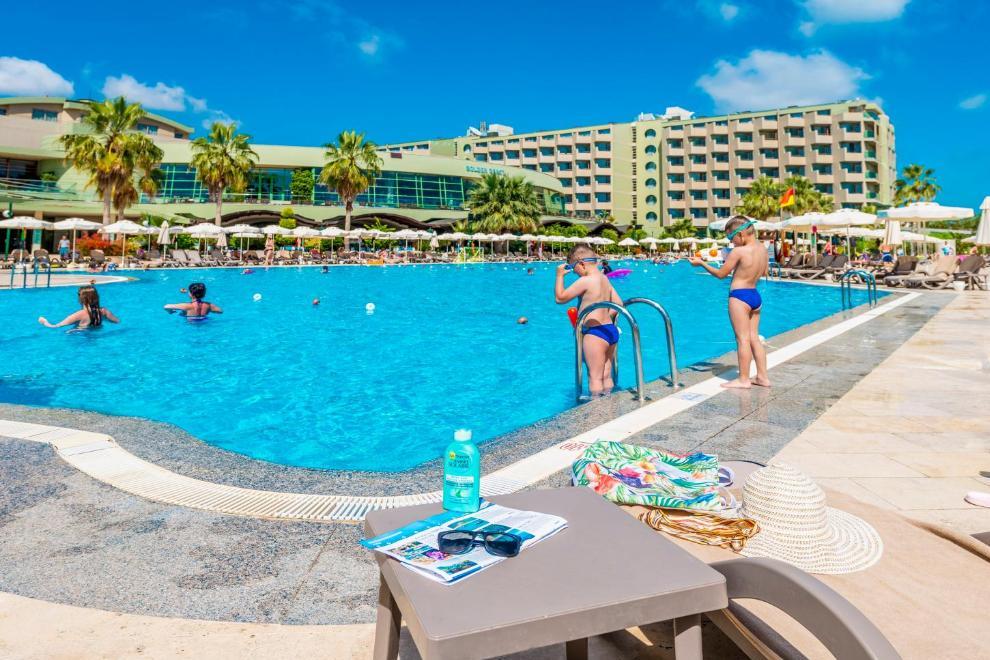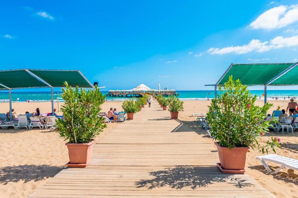 Този хотел на брега на Средиземно море разполага с дълга частна ивица пясъчен плаж. Съоръженията на място се допълват от 2 открити басейна, аквапарк с 3 басейна и 11 водни пързалки. Чадъри, шезлонги и матраци - безплатно. Хавлии се предлагат срещу депозит.