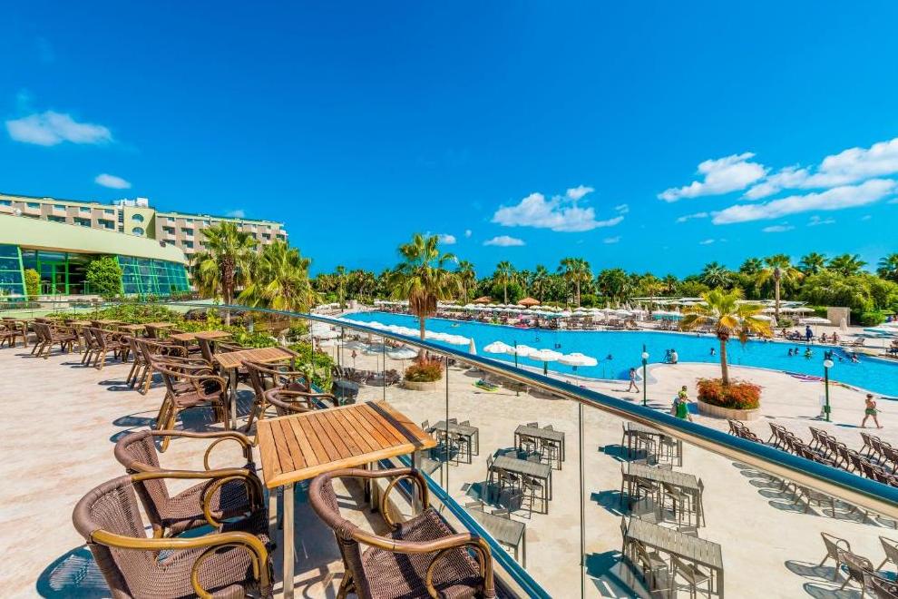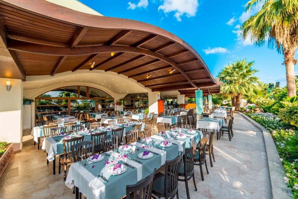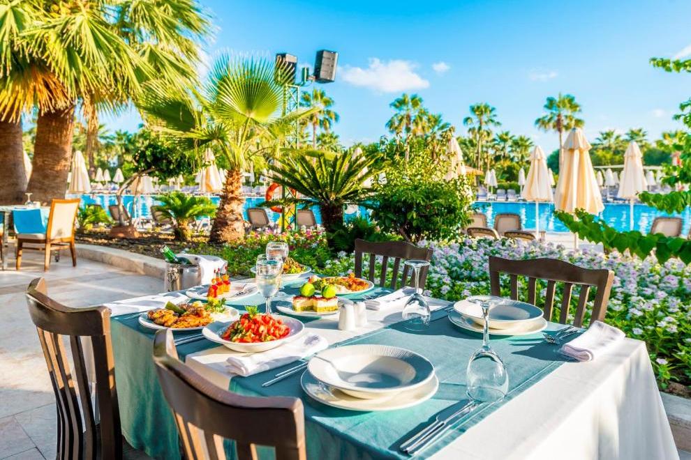 Основен ресторант на блок маса, ресторант - градина, бар на басейна, 8 а` ла карт ресторанта: италиански, турски, стек, далекоизточен, рибен, кебап, средиземноморски, мексикански, гръцки. Освежаващи напитки и закуски се поднасят в бар на басейна, лоби бар, бар в градината, диско бар, рецепция с голямо лоби.