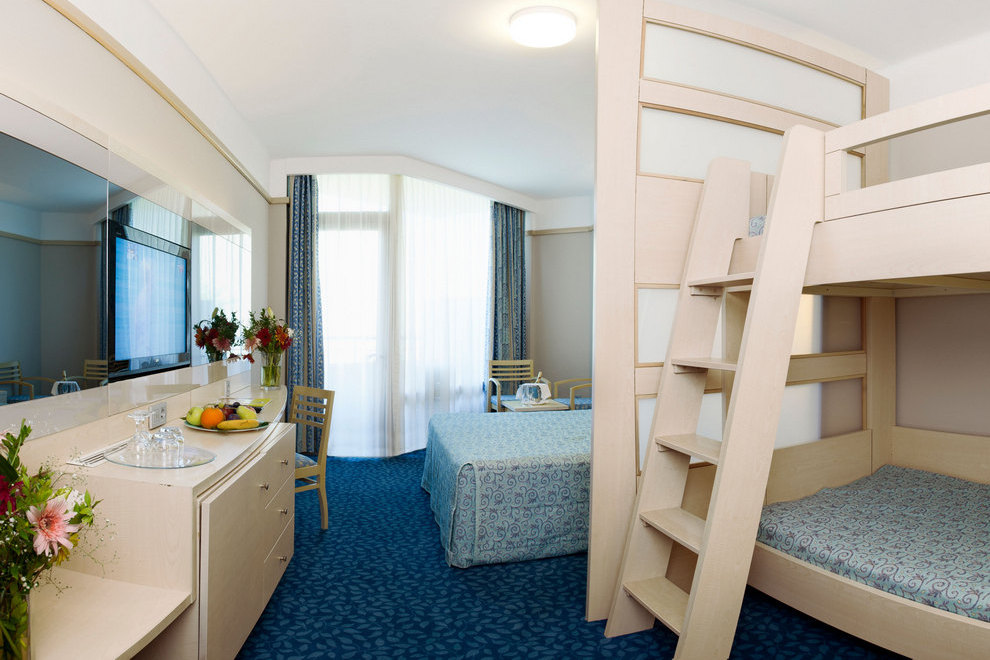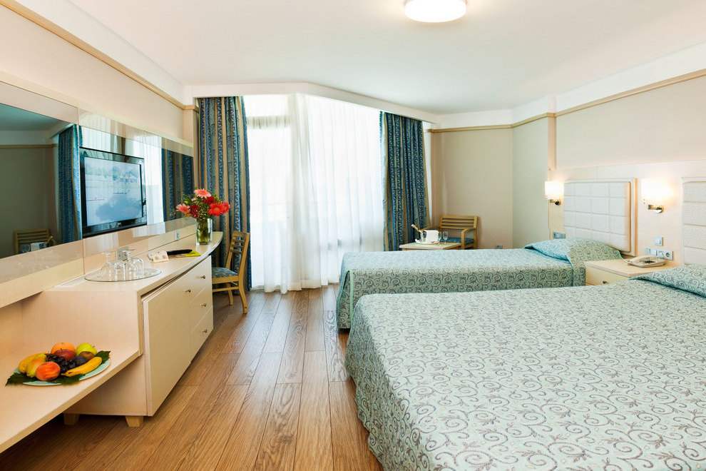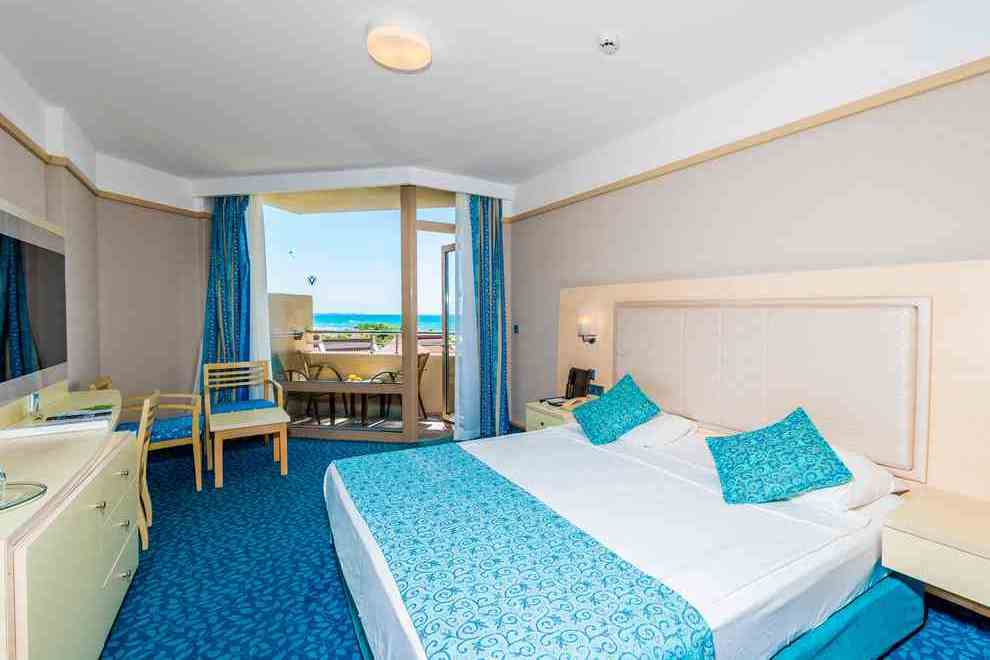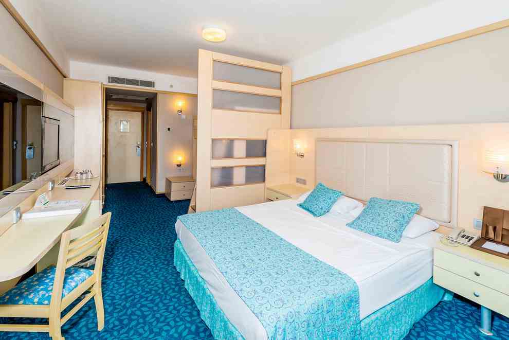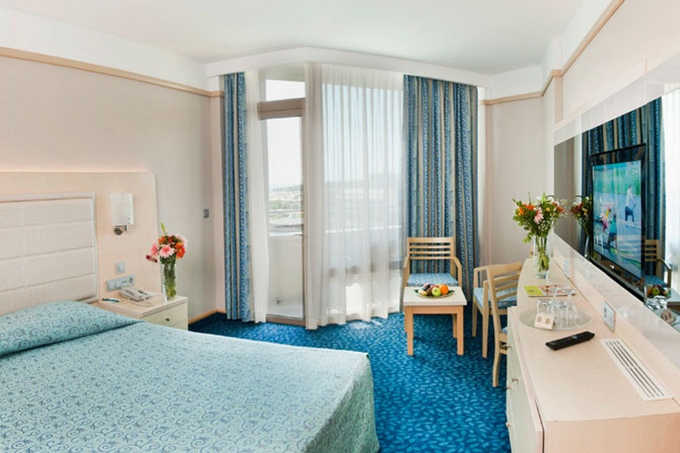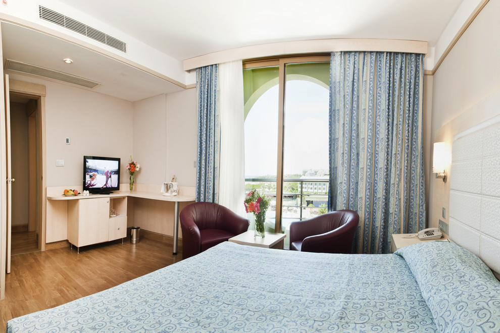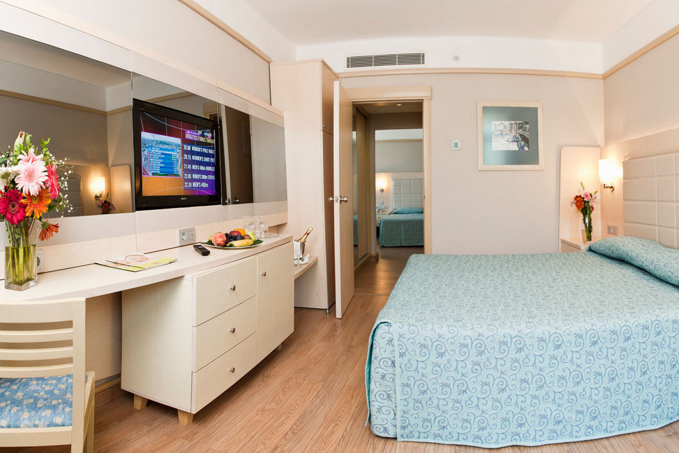 Хотелът се състои от една 6-етажна сграда в която са разпределени 404 климатизирани стаи: 312 Standard Room (изглед суша или страничен изглед море - 24 кв.м), 4 Handicapped Room (пригодени за хора с ограничена подвижност - 24 кв.м), 45 Family BunkBed Room (двойно и двуетажно легло, изглед градина - 29 кв.м), 35 Family Room (2 спални, двойно и две единични легла - 42 кв.м), 56 Suite Room (две спални, двойно и две единични легла, хол, изглед море – 56 кв.м). Всички стаи са оборудвани с телевизор, телефон, сет за чай/кафе, минибар (безплатен), сейф (безплатен), баня с душ, сешоар. Почистване на стаите и смяна на кърпите – всеки ден, смяна на спалното бельо – 2 пъти в седмицата.