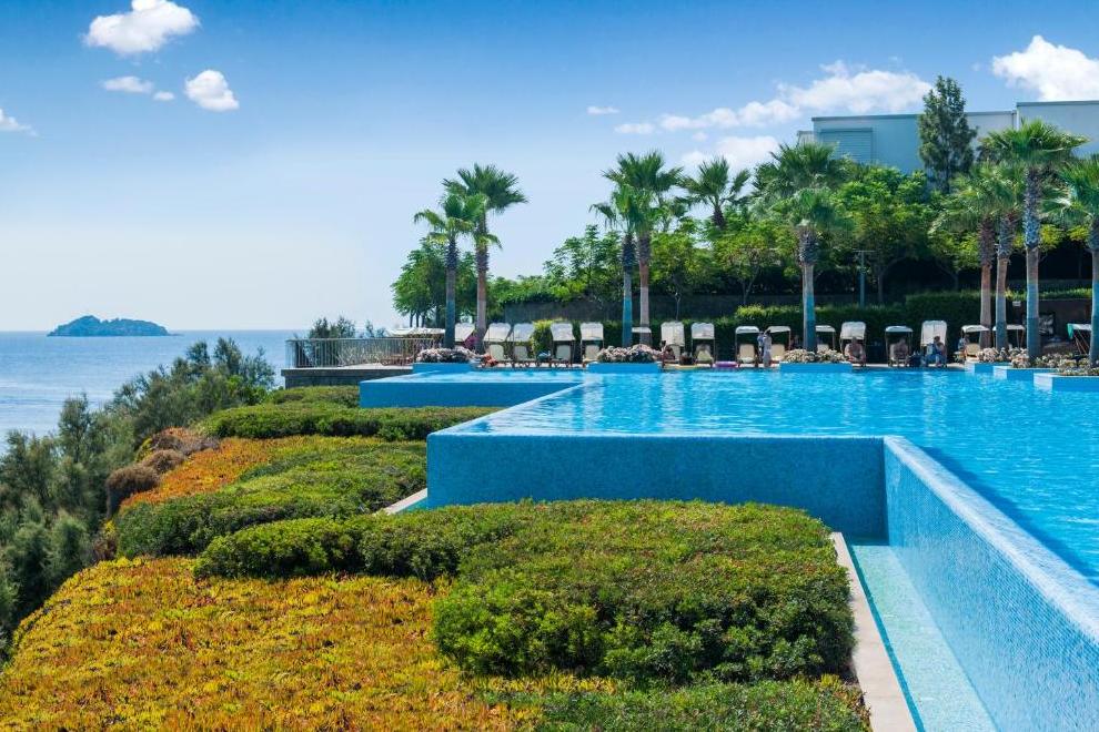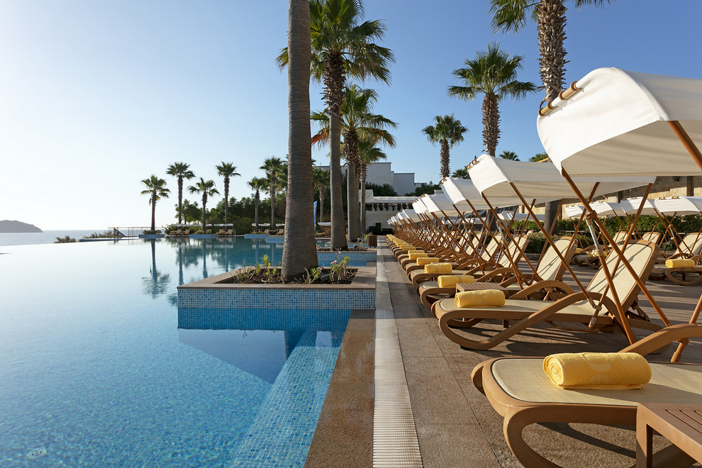 Хотелът разполага със собствен пясъчен плаж и кей, който се използва и за яхти. Xanadu Island Hotel разполага с два открити плувни басейна и два детски басейна с атрактивни, релаксиращи слънчеви тераси, обзаведени с шезлонги и чадъри. Чадъри, шезлонги на плажа и при басейна се ползват безплатно.