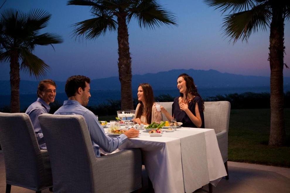 Хотелът разполага с основен ресторант, 2 а`ла карт ресторанта (италиански и средиземноморски; с предварително записване), сладкарница, 7 бара. HIGH CLASS ALL INCLUSIVE концепцията включва закуска, обяд, вечеря и междинни хранения - 24 часа. Местни и някои вносни алкохолни и безалкохолни напитки - без лимит.