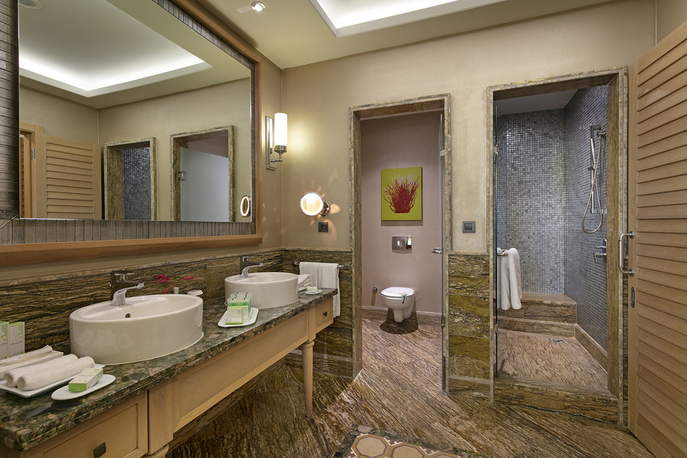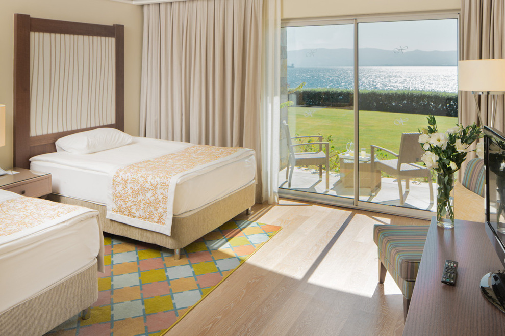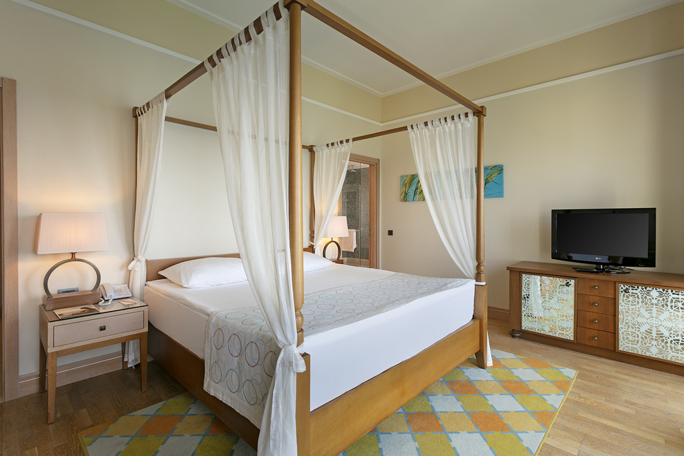 Хотелът предлага 420 стаи. Половината от стаите се намират в X-образната по форма главна сграда, а останалите се намират във вили тип бунгало. Всички стаи са красиво обзаведени за максимален комфорт, с LCD телевизор, телефон с директно избиране, сейф в стаята и минибар с безалкохолни напитки. Почистване на стаите – всеки ден, смяна на спалното бельо – всеки ден.