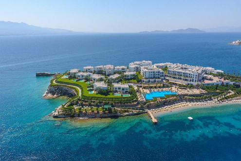 Хотелът се намира на 65 км от летището и на 25 км от центъра на Бодрум, в Акярлар, на брега на Егейско море. Хотелът е разположен на полуостров сред уханни цветни градини и живописни дворове, скалисти хълмове, палми. Само три мили отделят Xanadu Island Hotel 5 * от гръцкия остров Кос.