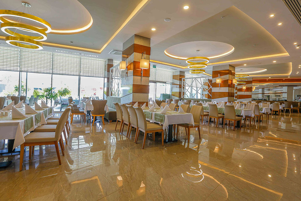 На разположние на гостите са основен ресторант, ресторант на плажа; а`ла карт ресторант, сладкарница, лоби бар и 5 бара. Базата Ultra All Inclusive включва закуска, обяд и вечеря на блок маса в основния ресторант, допълнителни закуски и неограничена консумация на местни алкохолни и безалкохолни напитки в часовия интервал 10:00-01:00 ч.