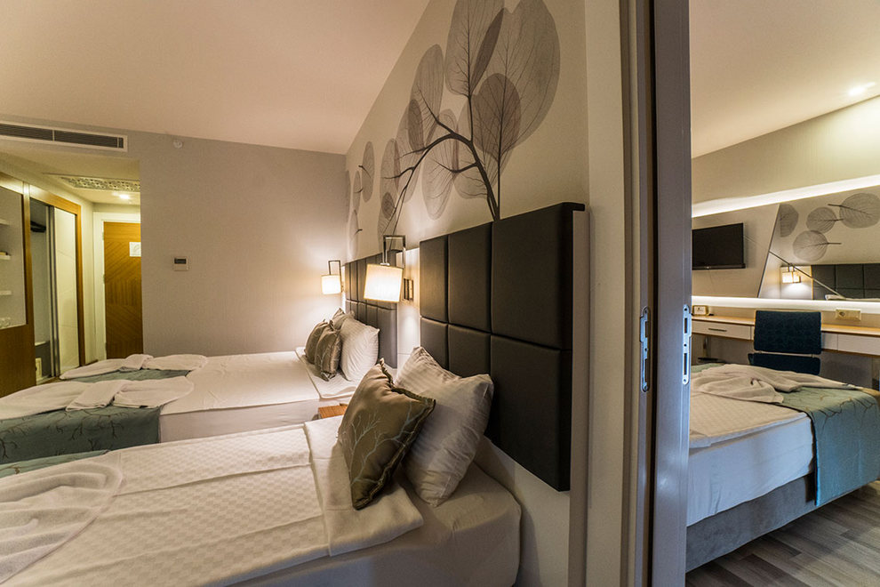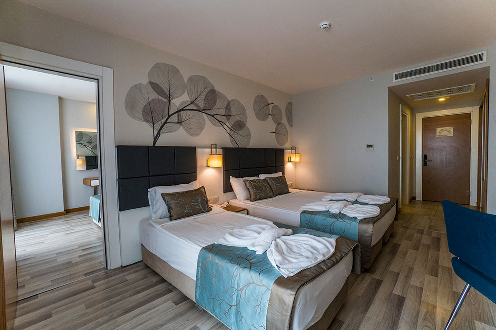 Suit Room се състоят от една спалня, тоалетна, душ кабина, сешоар, сателитна телевизия, LCD телевизор, телефон, сейф, минибар (пълен при настаняване), централен климатик, ламиниран паркет, просторна тераса, площ от 50 кв.м.