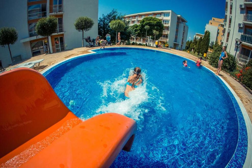 Апартаментите представляват комфортни студия, двустайни апартаменти с хол/дневна и 1 отделна спалня, тристайни апартаменти с хол/дневна и 2 отделни спални, всички напълно обзаведени – оборудвана кухня с всички уреди и прибори, нужни за готвене и хранене, цифрова TV, климатик във всяка стая, комплект завивки и кърпи.