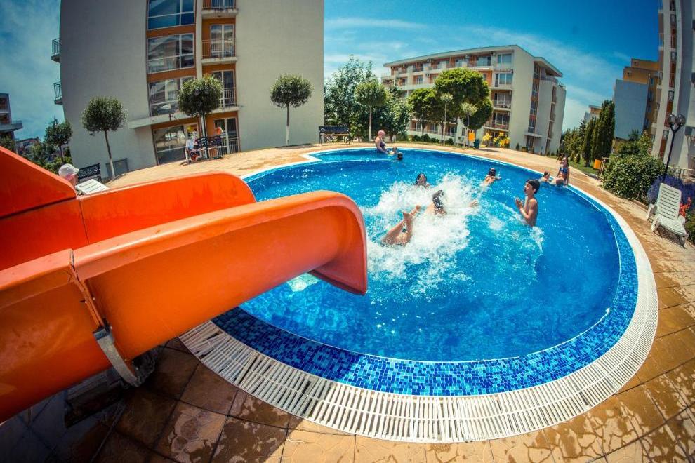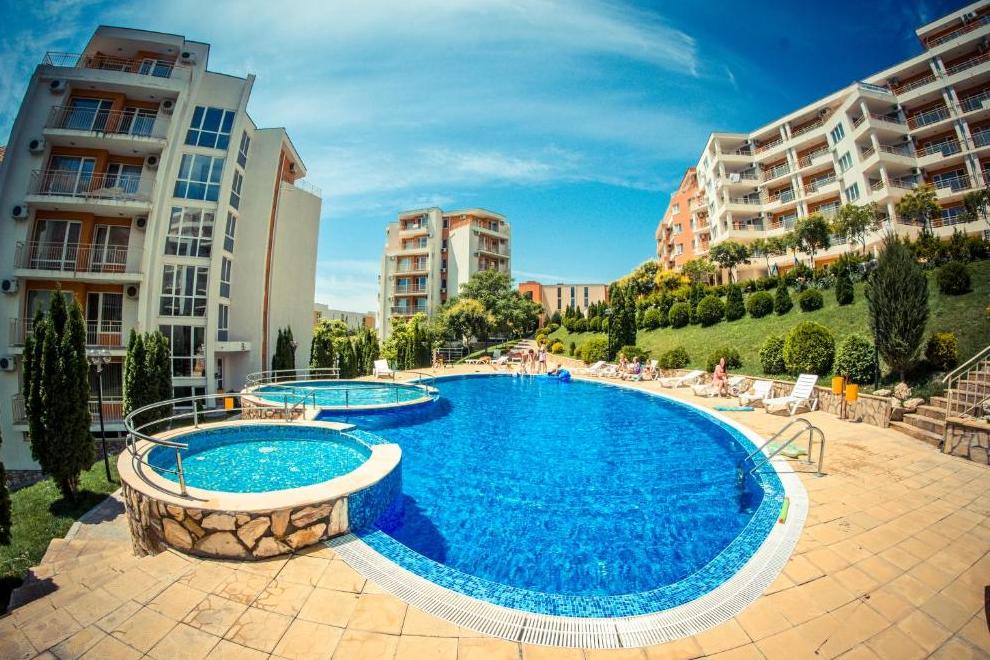 Апартхотелът „Гранд Ризорт” обединява три комплекса в близост до морето – „Краун Форт Клуб”, „Империал Форт Клуб” и „Сий Форт Клуб”, разположен е на 150-300 метра от плажа, между курортите Свети Влас и Елените и е заобиколен от гора.
