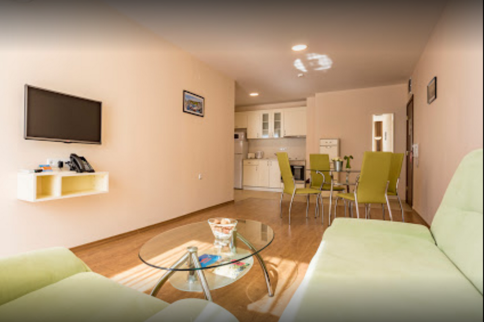 Хотелът настанява гостите си в климатизирани помещения - студия, семейни студи, едноспални апартаменти, двуспални апартаменти. Те са оборудвани с телефон, сателитна телевизия, сейф, баня с душ кабина, сешоар, балкон.