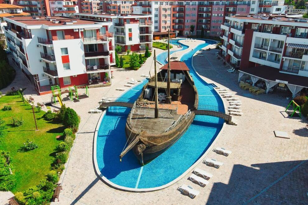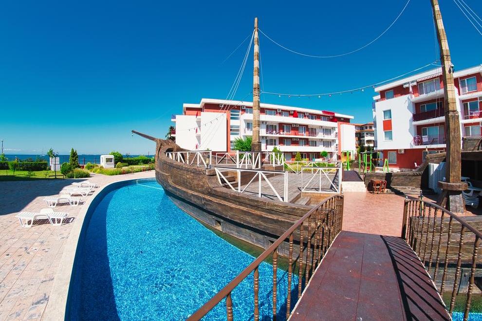 Комплекс „Привилидж Форт Бийч” е разположен в близост до Елените, на брега на морето в живописен, южен залив на плажа Робинзон. Слънчев бряг е на 5 километра, а международно летище Бургас е на 36 километра.