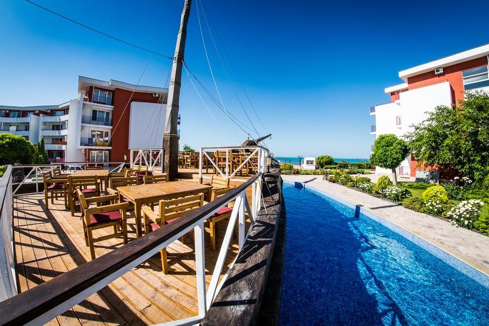Хотелът се намира в непосредствена близост до плажа. За удобство на гостите предлага 2 плувни басейна и детски басейн.