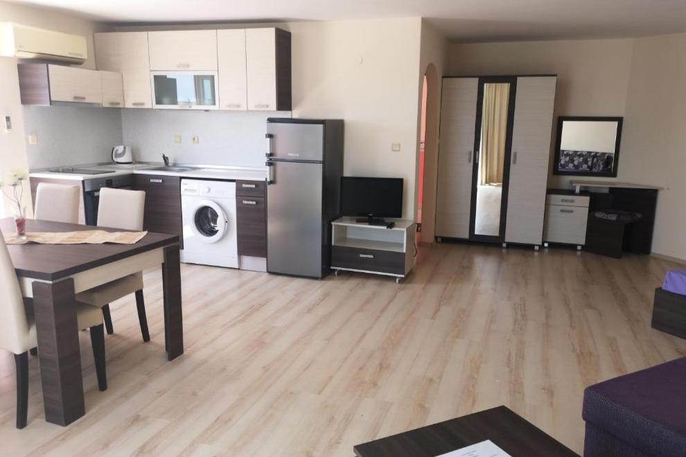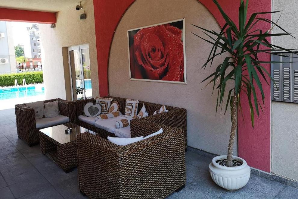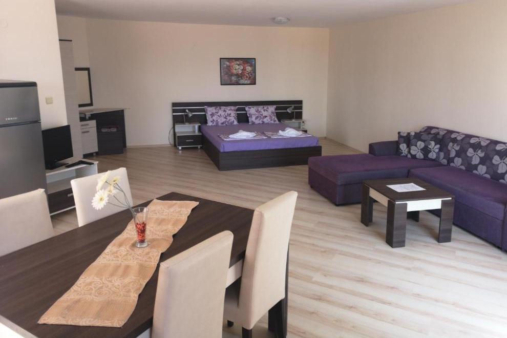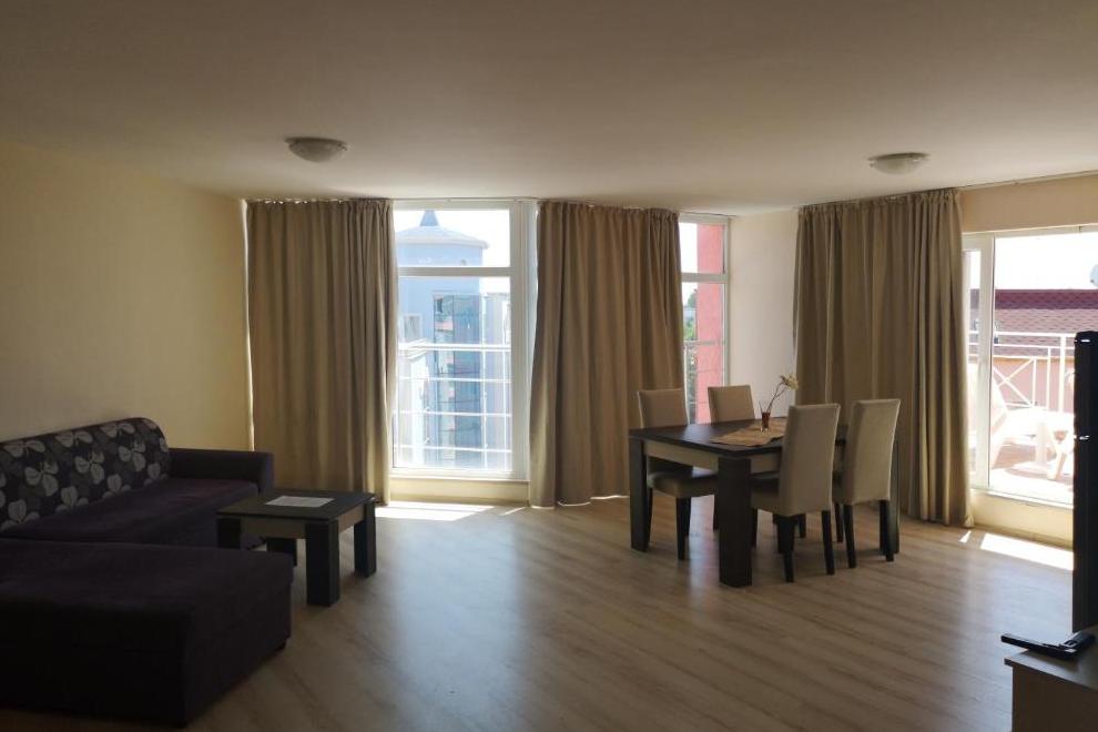 Апарт хотелът предлага фамилни студия, едностайни и двустайни апартаменти. Студио "Скарлет" се състои от просторна стая, коридор и баня. Стаята е обзаведена с eдно голямо легло за двама, гардероб, масичка и стол, телевизор. В банята има вана с душ, принадлежности за баня. Терасата е оборудвана с маса, столове и личен шезлонг. Апартаментите "Розелина", "Шарлота" и "Бел Сайлънт" се състоят от спалня, всекидневна, баня и антре. Всекидневната разполага с диван, малка маса и телевизор, трапезен кът и оборудван кухненски бокс. Има тераса. Апартаменти "Циганско лято" и "Карчен" се състоят от две помещения: дневна, спалня, има две бани с тоалетни и просторна панорамна тераса. Всекидневната разполага с дивани, малка маса, телевизор, трапезен кът и оборудван кухненски бокс. Президентският апартамент има кухненски бокс с трапезария, дневна, две спални, две бани с тоалетни и антре. Всекидневната разполага с двойни и единични дивани, малка маса и телевизор с LCD екран. Трапезарията е с капацитет 6-8 човека. Има напълно оборудван кухненски бокс, бани с душ-кабина (вана в едната баня), мивка с огледало, сешоар, козметика за баня. Огромна тераса от 56 кв.м с шезлонги, плажни легла с балдахин, маса със столове, джакузи и телескоп.