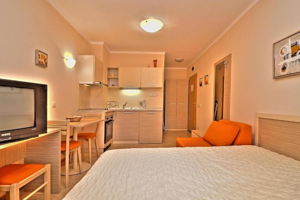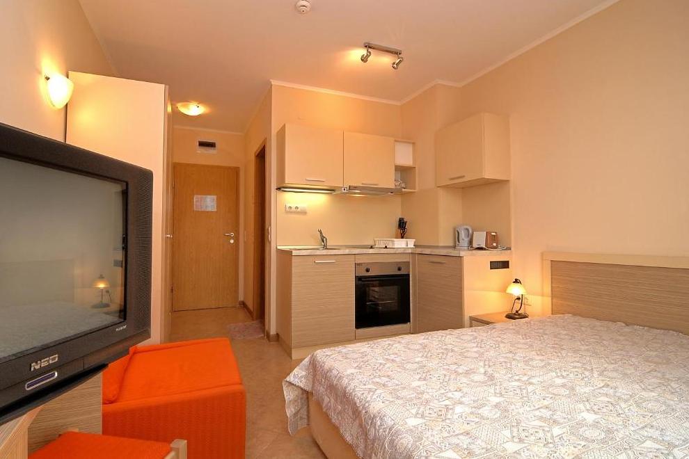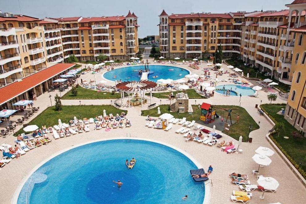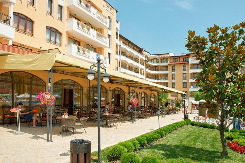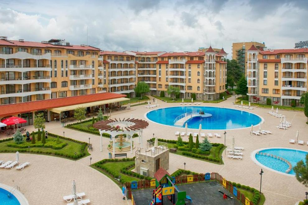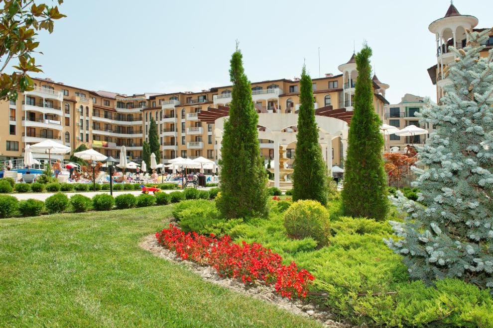 Просторна градина от над 10 000 кв.м. с детски кът; 3 басейна, включително детски - над 1000 кв.м.; Модерно и стилно обзаведени стаи и апартаменти; СПА център - масажи, джакузи, сауна, солариум; Фитнес; Супермаркет; Ресторант; Лоби бар; Козметика; Валутно бюро; Фризьорски салон; 24-часова рецепция; Шезлонги и чадъри на басейна; 24-часова охрана; Пералня; Услуги за събуждане; Екскурзии; Медицински услуги; Смяна на бельо в стаите; Сейф; Магазин; Детска кошарка под наем; Детегледачка; Детска площадка; Паркинг