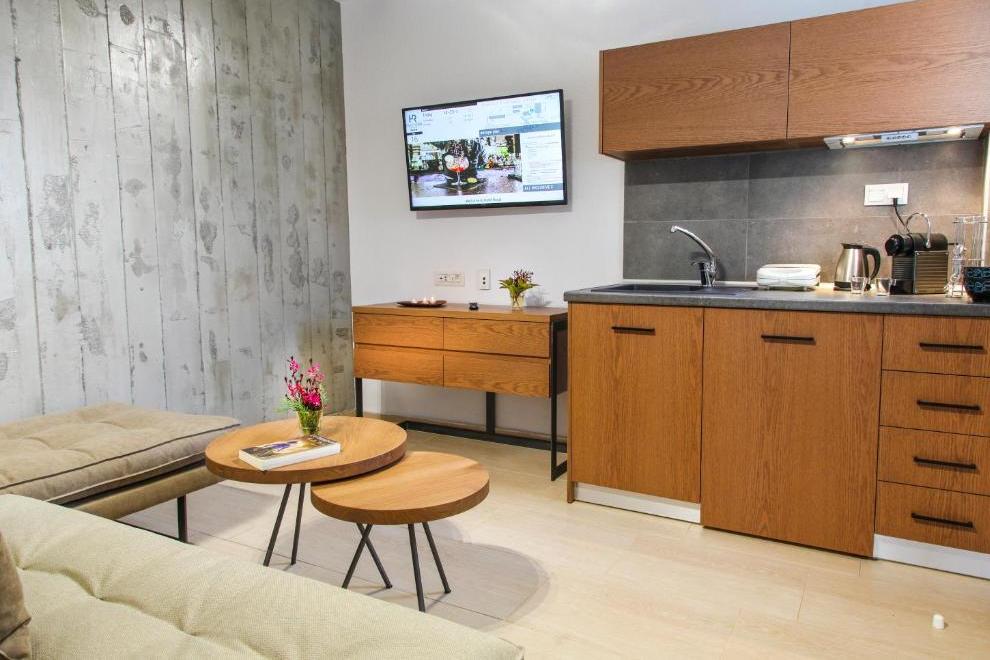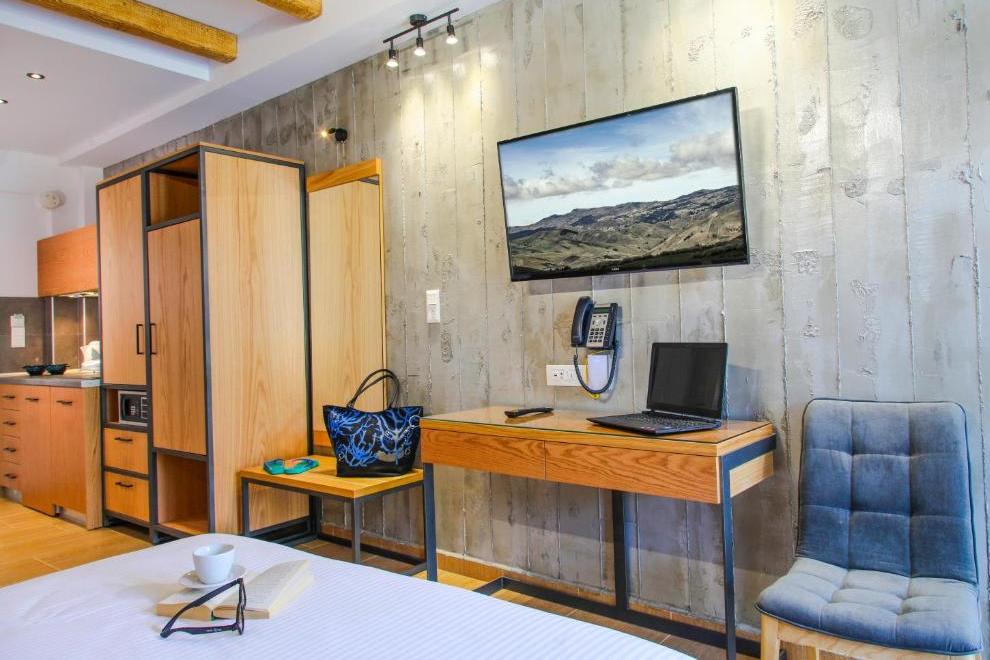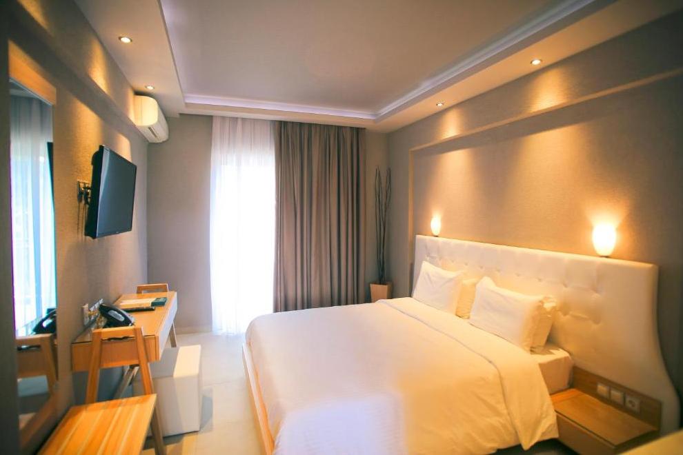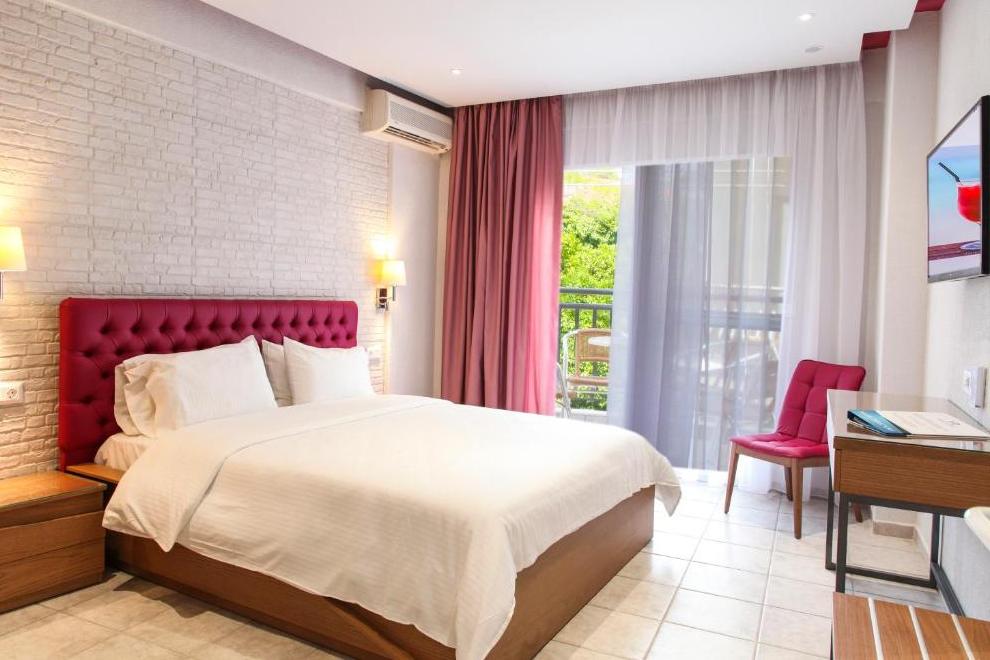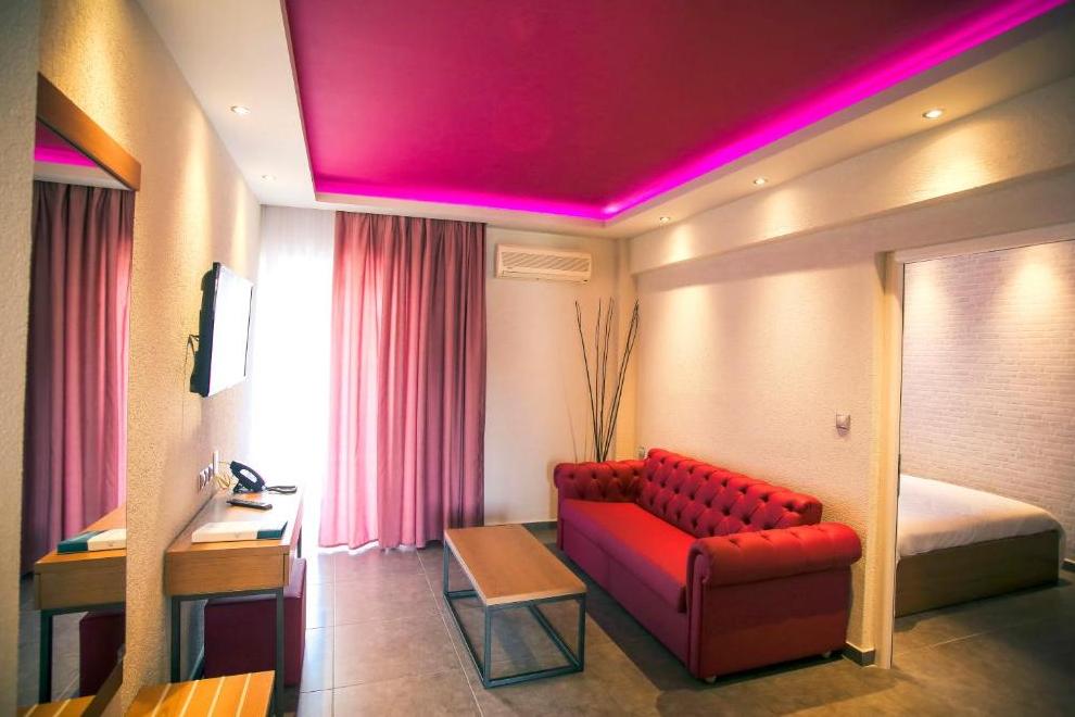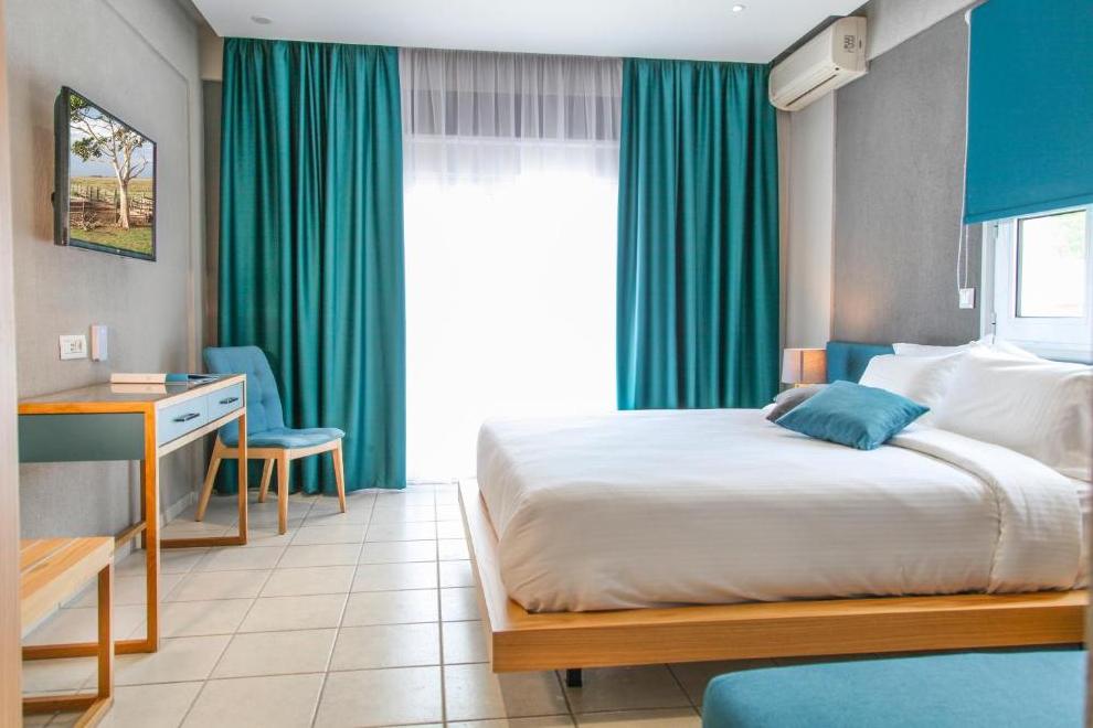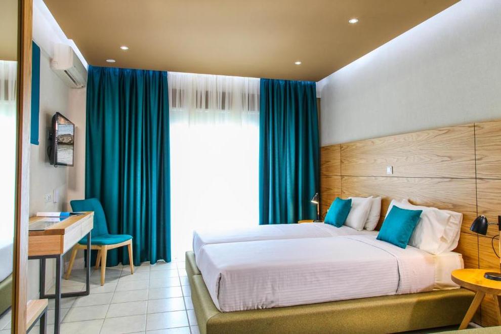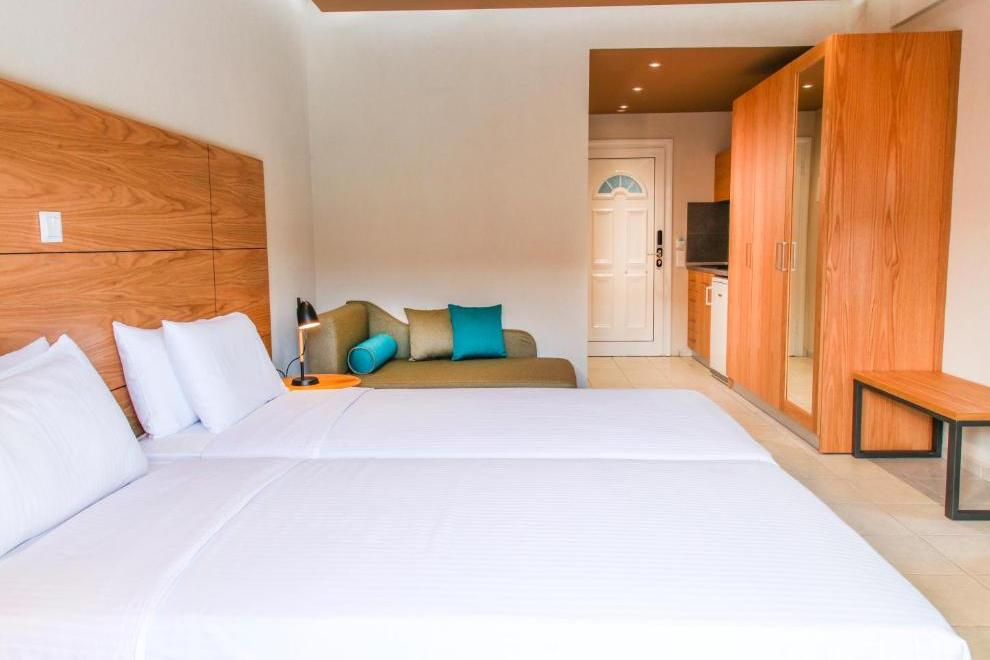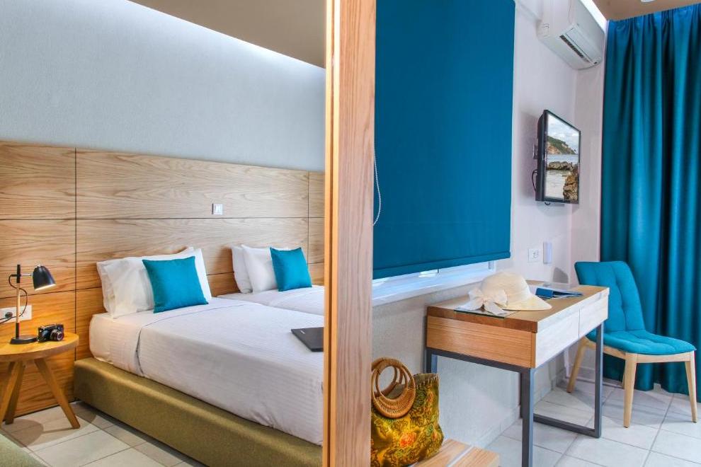 Хотелът се състои от 4-етажна сграда със стаи и отделна сграда с бар и рецепция. Посреща гостите си в 47 стаи, от които Studios, Studios Superior, Studios Deluxe, Apartments 1-Bedroom Superior, Suites PV, Junior Suites. Те са оборудвани с кухненски бокс с готварска печка с два котлона, тостер, електрически чайник, посуда, хладилник, телевизор, баня с душ, сешоар, безплатен Wi-Fi достъп до интернет, балкон/тераса. Ежедневно почистване на стаите, смяна на спално бельо и кърпи се прави 3 пъти седмично.