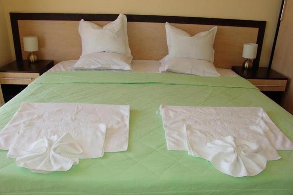 Комплексът се състои от 26 едноспални и 7 двуспални апартамента. Те са елегантно мебелирани и оборудвани климатична система, телевизор със сателитни програми, самостоятелна баня с душ кабина. На разположение на гостите са оборудван кухненски бокс, хладилник, пералня. Самостоятелни бани с душ кабина.