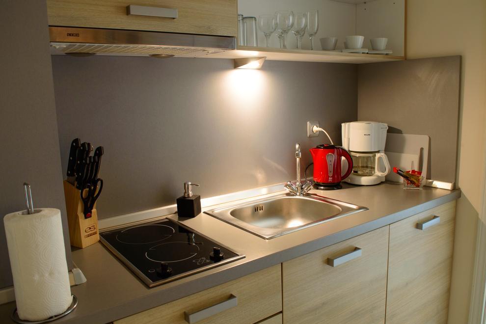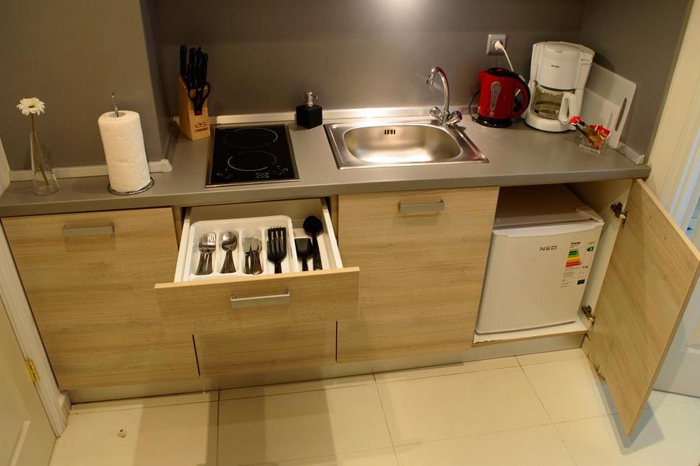 Хотелът предлага 56 студия, 24 апартамента с една спалня и 8 апартамента с две спални, всички обзаведени комфортно. Помещенията разполагат с кухненски бокс, в който има вградени котлони, аспиратор, кана за чай и кафе.