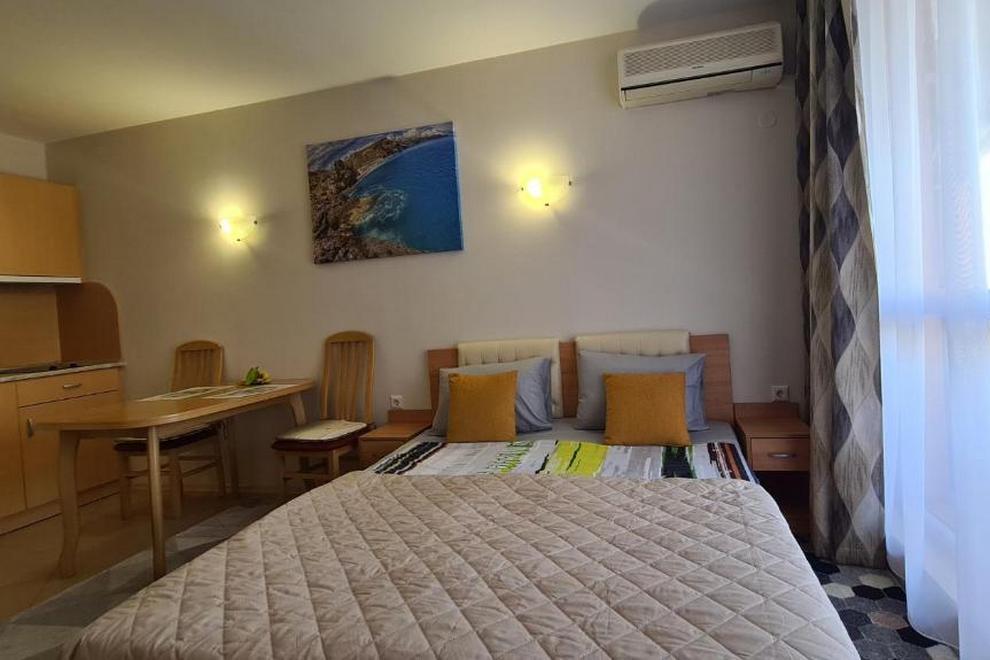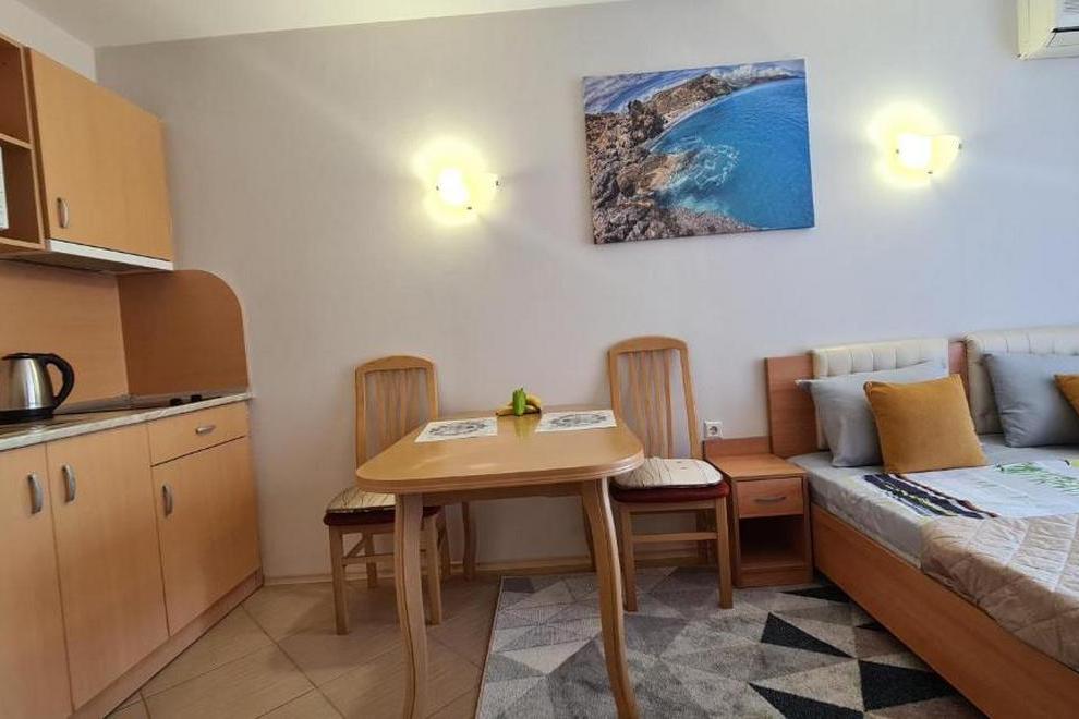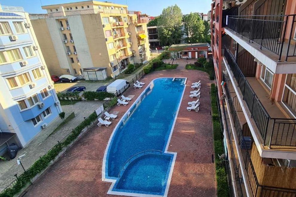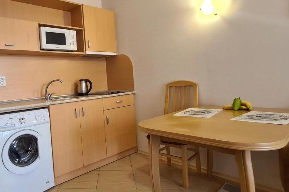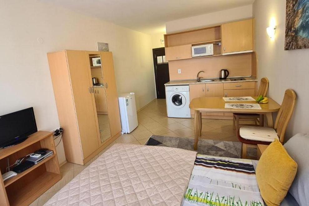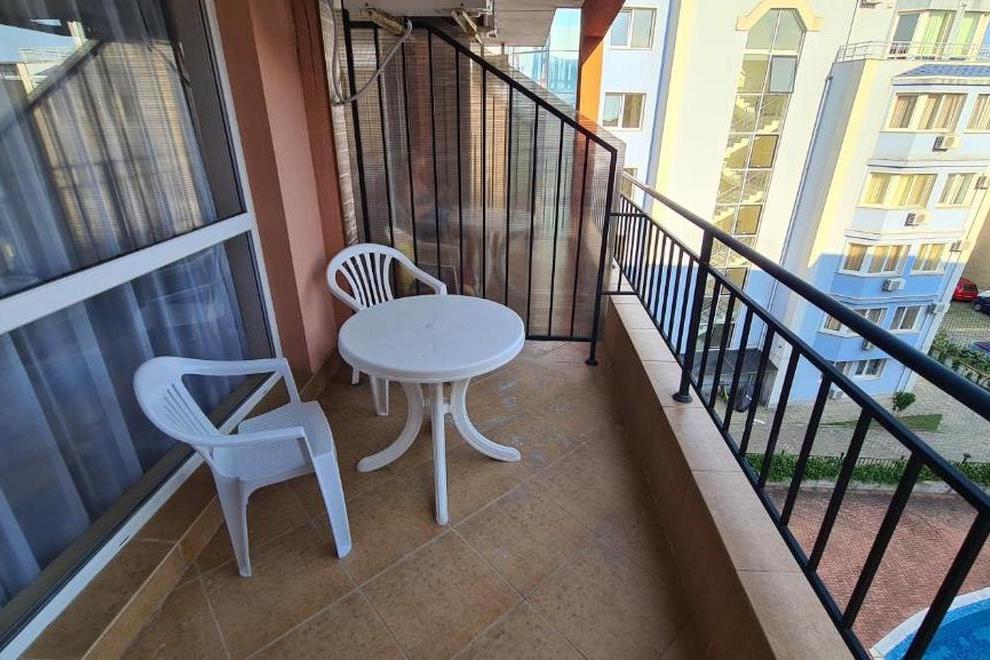 Апартаментът разполага с 1 спалня, 1 баня, спално бельо, хавлии, плоскоекранен телевизор, кът за хранене, напълно оборудвана кухня и балкон с изглед към басейна.