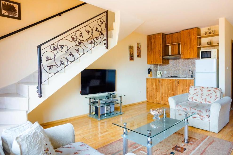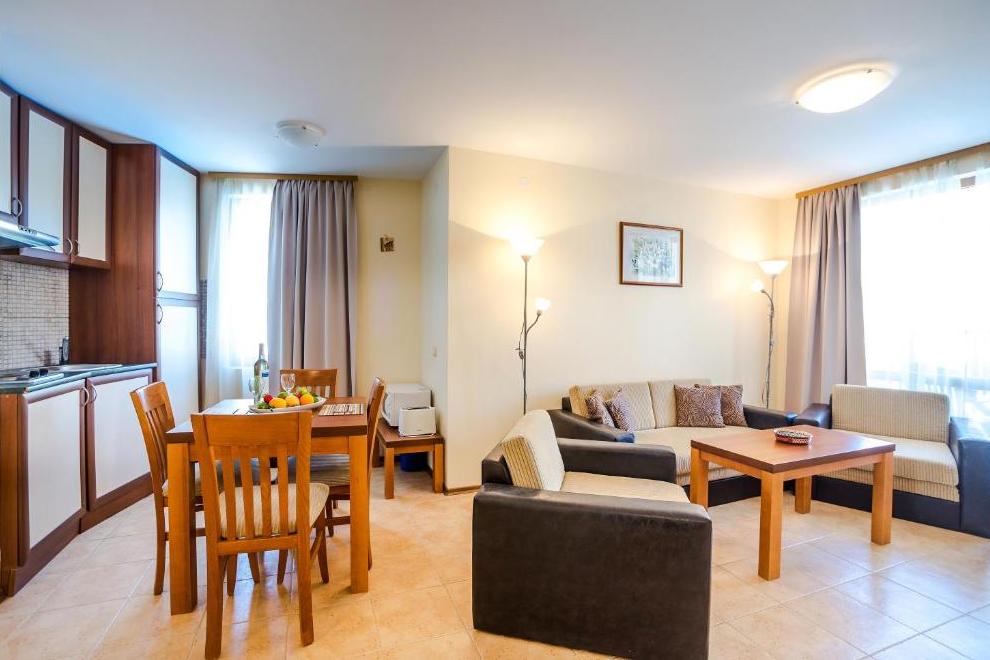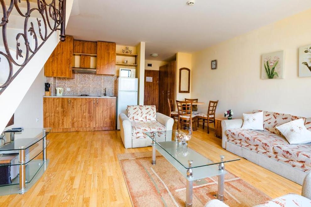 Апартаментите се намират на 5 минути пеша от пясъчния плаж. Центърът на Слънчев бряг е на 1 километър, а летището на Бургас е на 28 километра.
