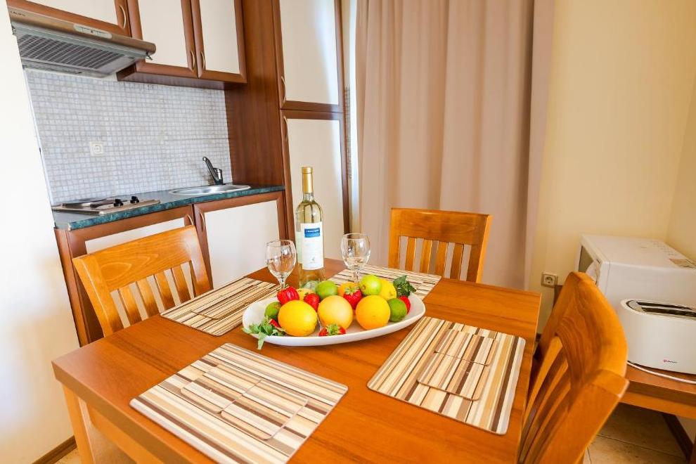 Бистрото сервира европейски и български специалитети, както и ястия на барбекю . В лоби бара се поднасят питиета. Срещу допълнителна такса се предлагат пакети за добре дошли с леки закуски и освежителни напитки. Само на 100 метра има оживена улица с много кафенета, магазини и ресторант. Гостите могат също така да пазаруват в супермаркета на място.