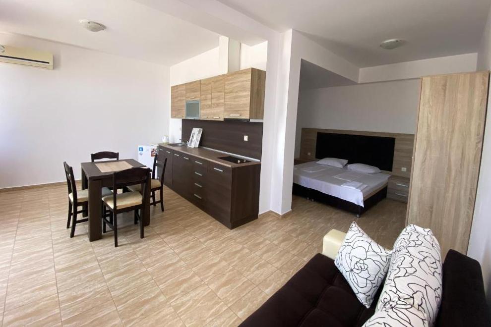 Посреща гостите си в климатизирани апартаменти, които са оборудвани с телевизор с плосък екран с кабелни канали, кът за сядане, кухненски бокс с микровълнова печка и хладилник, самостоятелна баня с душ. Някои от апартаментите предлагат изглед към морето.