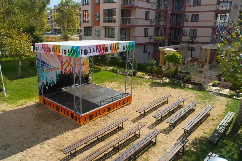 Тарсис разполага с два открити басейна, единият от които е с дължина 30 м, подходящ за всички поддръжници на професионалното плуване. В градината има площадка за плажен волейбол, където спортният инструктор организира забавни турнири, в които всеки може да участва. Нощният клуб е отворен от 23:00-02:00ч. и предлага различни забавления за всеки вкус.На разположение на гостите е градина с люлки, пейки и хамаци. Провеждат се Караоке вечери, Ретро вечери и училище по латино танци. За децата: детска площадка, вечерна мини дискотека, безплатна развлекателна зона и Детски клуб (4 до 12 години).