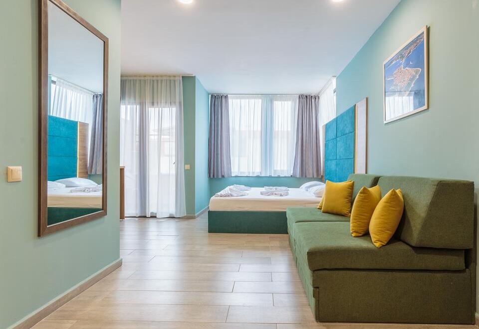Двойните стаи са с 1 х двойно или две единични легла, разтегателен диван (в повече от стаите) място за хранене, ТВ, интернет, телефон, кабелна телевизия, индивидуален климатик, малък хладилник, баня, снабдена със сешоар и тоалетни принадлежности. Капацитет: 2 х възрастни, 2 деца. Размер: 27 кв.м. Гледка: към града или басейна. Едностайните апартаменти имат двойно легло с кралски размер или 2 отделни легла, индивидуално обзавеждане, диван (сгъваем) трапезария, климатик, сейф, бебешко креватче (ако е необходимо) напълно оборудвана баня с тоалетна. Легло тип: Queen / King. Капацитет: 4 възрастни или 2 възрастни + 2 деца. Размер на стаята: 55 кв.м. Изглед: град или басейн. Двустайните апартаменти имат двойно легло с кралски размер или 2 отделни легла, индивидуално обзавеждане, диван (сгъваем) трапезария, климатик, сейф, бебешко креватче (ако е необходимо) напълно оборудвана баня с тоалетна. Легло тип: Queen / King. Капацитет: 4 възрастни или 2 възрастни + 2 деца. Размер на стаята: 55 кв.м. Изглед: град или басейн.