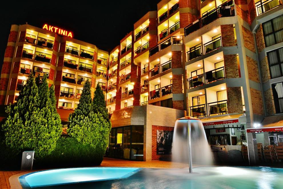 Хотел „Актиния“ е на 200 м от плажа, в южната част на Слънчев бряг. Старият Несебър е на 2 км от хотела. Хотелът се намира само на 25 км от летище Бургас и на 100 км от гр. Варна, в близост до уникалната природна атракция - дюните.