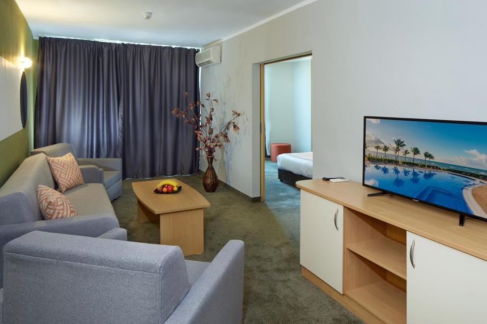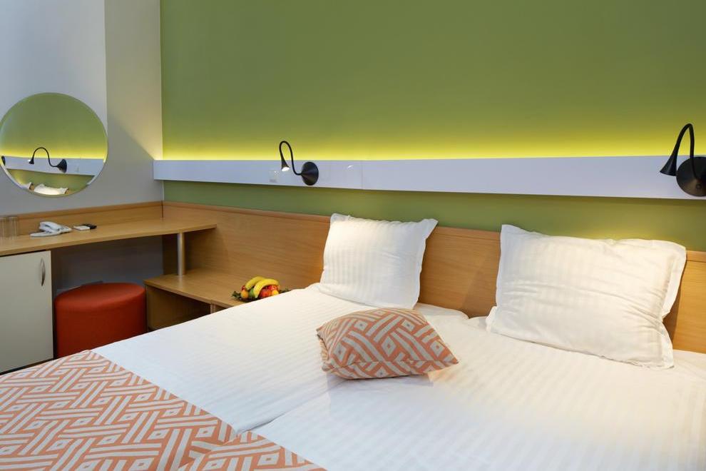 Реновиран през 2018 год., хотелът разполага с 70 двойни стаи, от които 37 стандартни и 33 двойни стаи делукс, 24 студиа и 4 апартамента, всички с климатици, осигуряваща комфорт както в летните жеги, така и през по - хладните дни и нощи. Всяка стая е модерно обзаведена и предлага баня с душ, балкон, директна телефонна линия, мини хладилник, кабелна телевизия.