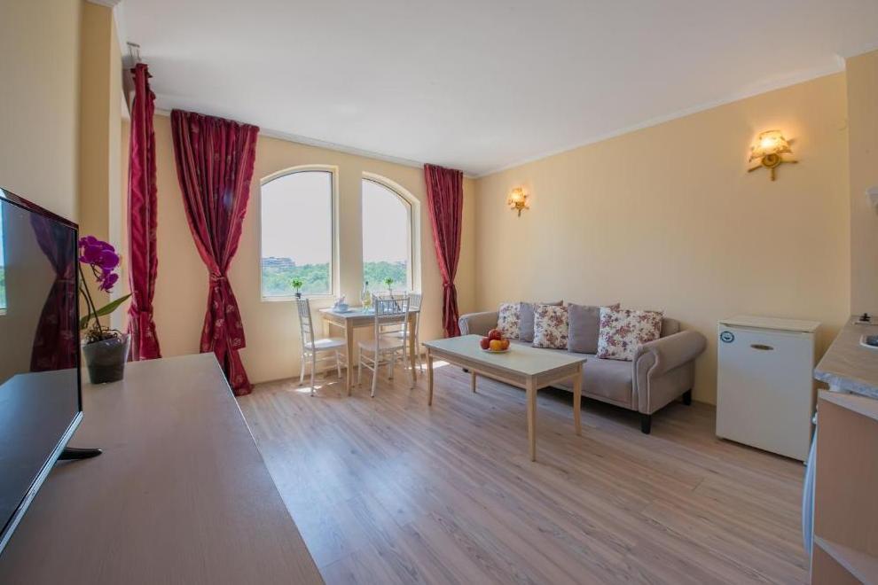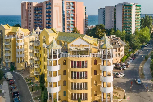 Намира се на 50 метра от плажа и на 2 км от центъра на Слънчев бряг. Несебър е на 7 км, а летище Бургас е на 35 минути с кола. На 150 метра има автобусна спирка. На 200 метра има магазин за хранителни стоки. Известната крайбрежна алея е на 40 метра. Свети Влас и яхтеното пристанище „Марина Диневи“ са на 5 минути с кола.